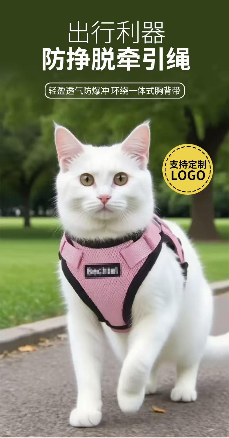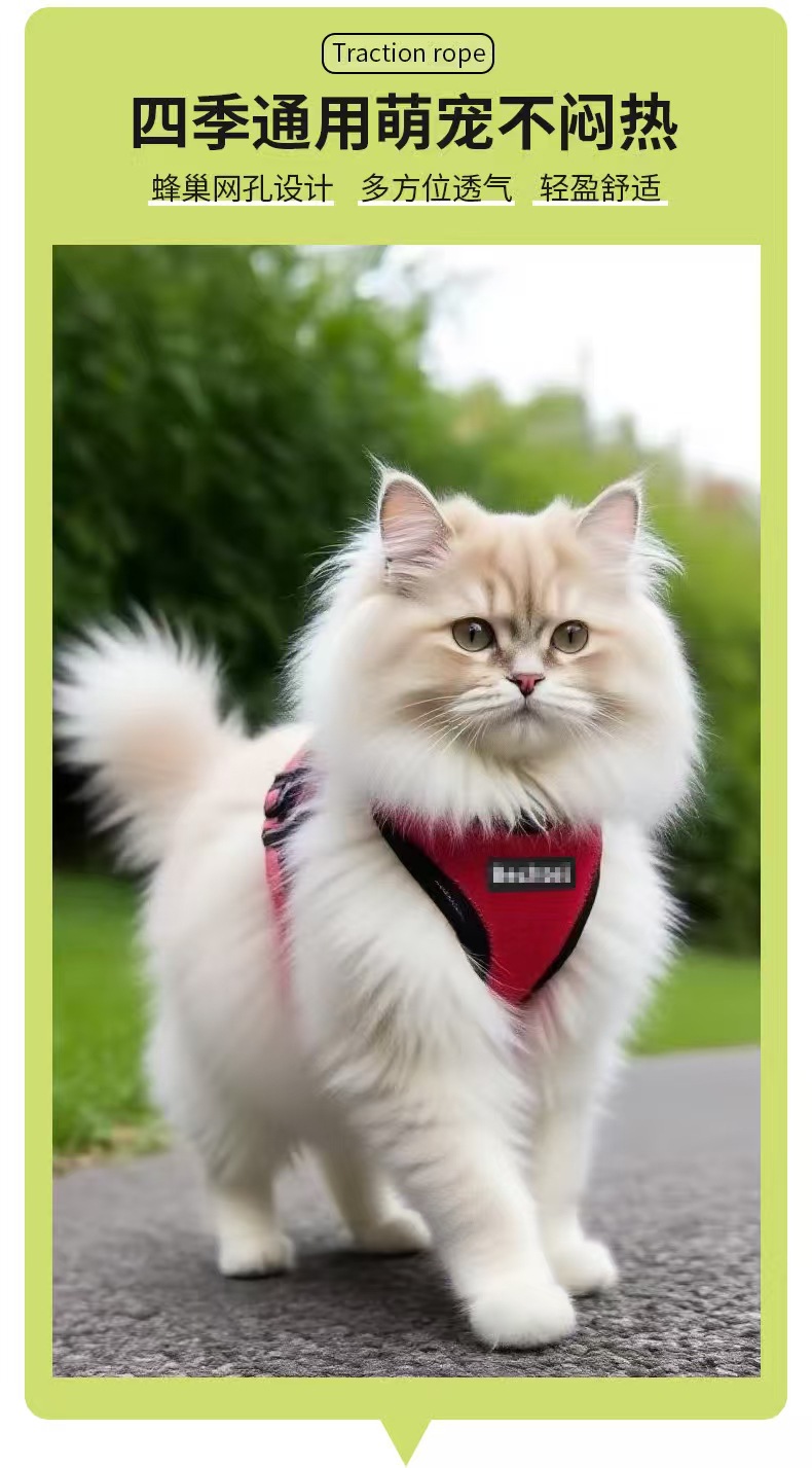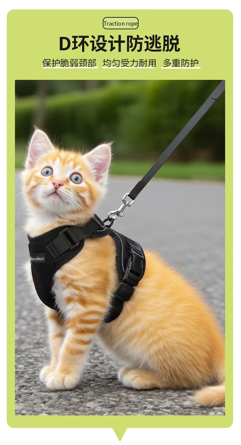 고양이 견인 로프, 이탈 방지, 조절 가능한 고양이 견인 로프, 고양이 견인 로프, 조끼 스타일 애완 동물 하네스, 여름 초박형스토어 가기