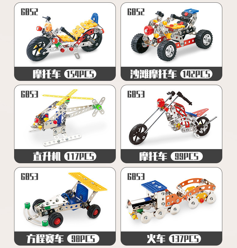 어린이 합금 창조적 인 엔지니어링 차량 모델 조립 자동차 DIY 금속 항공기 조립 빌딩 블록 자동차 경찰차 장난감스토어 가기