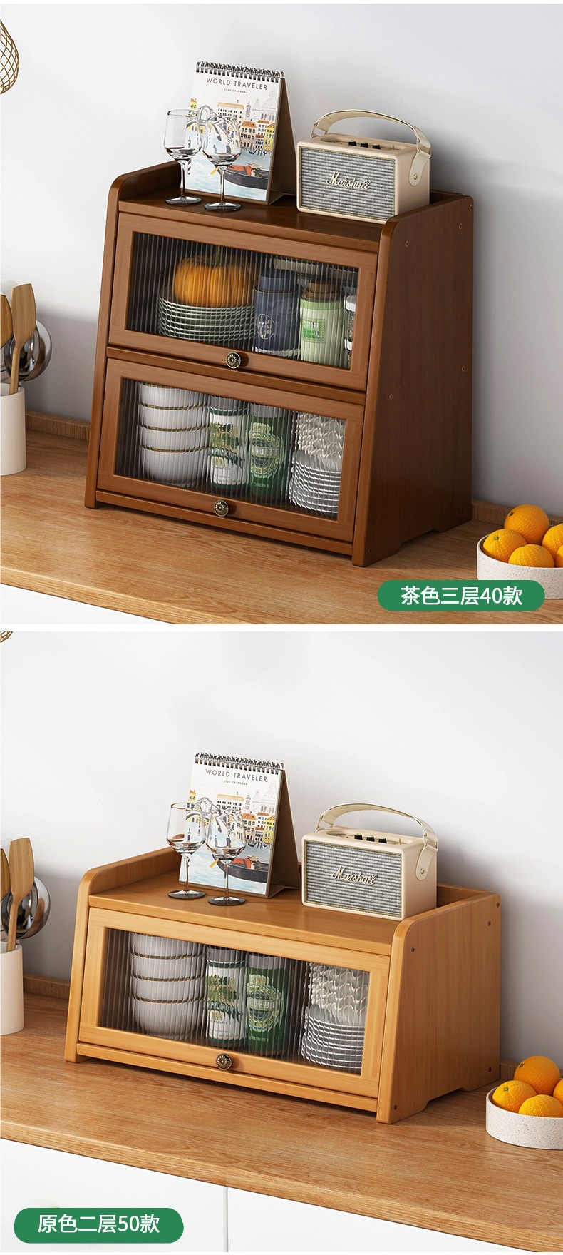 • 브라운 3단[40장]투명도어 조리대 수납장