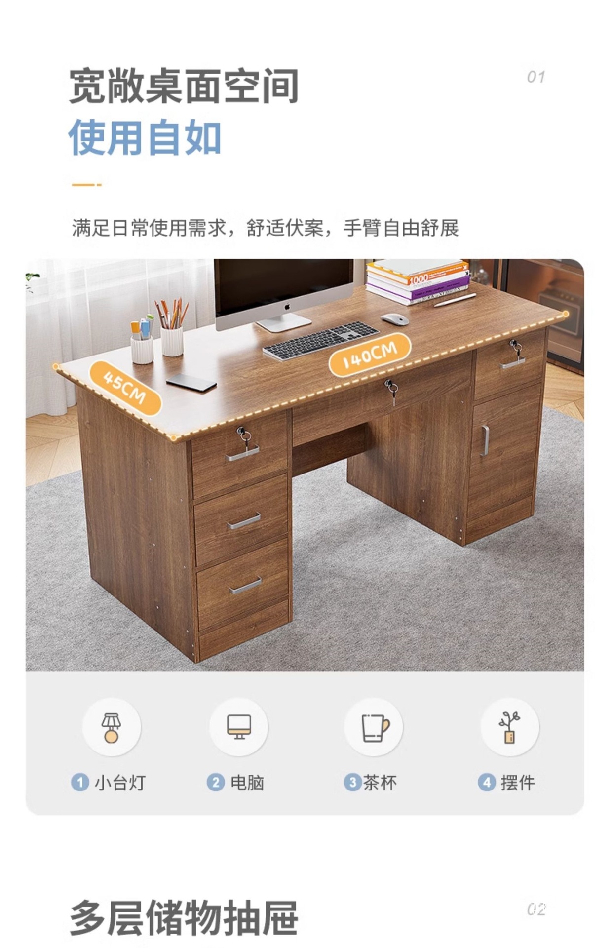 • 140cm 서랍 5개와 수납장 1개 단풍나무 + 회전의자
