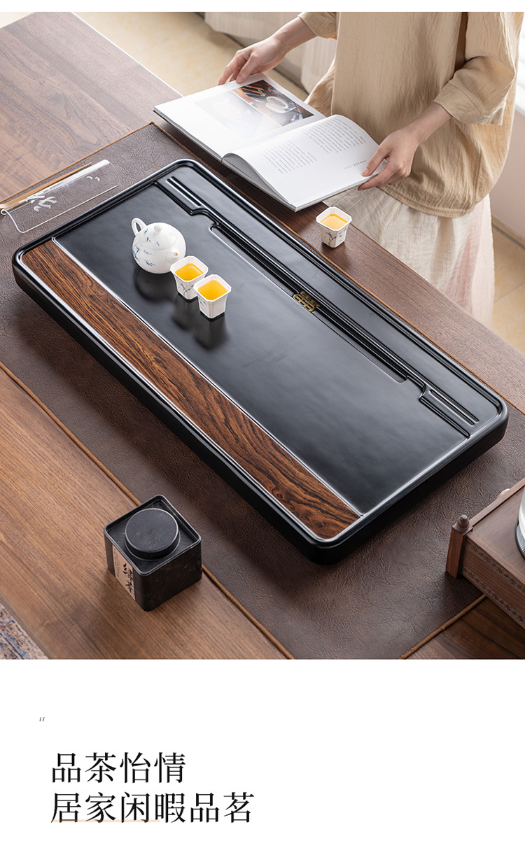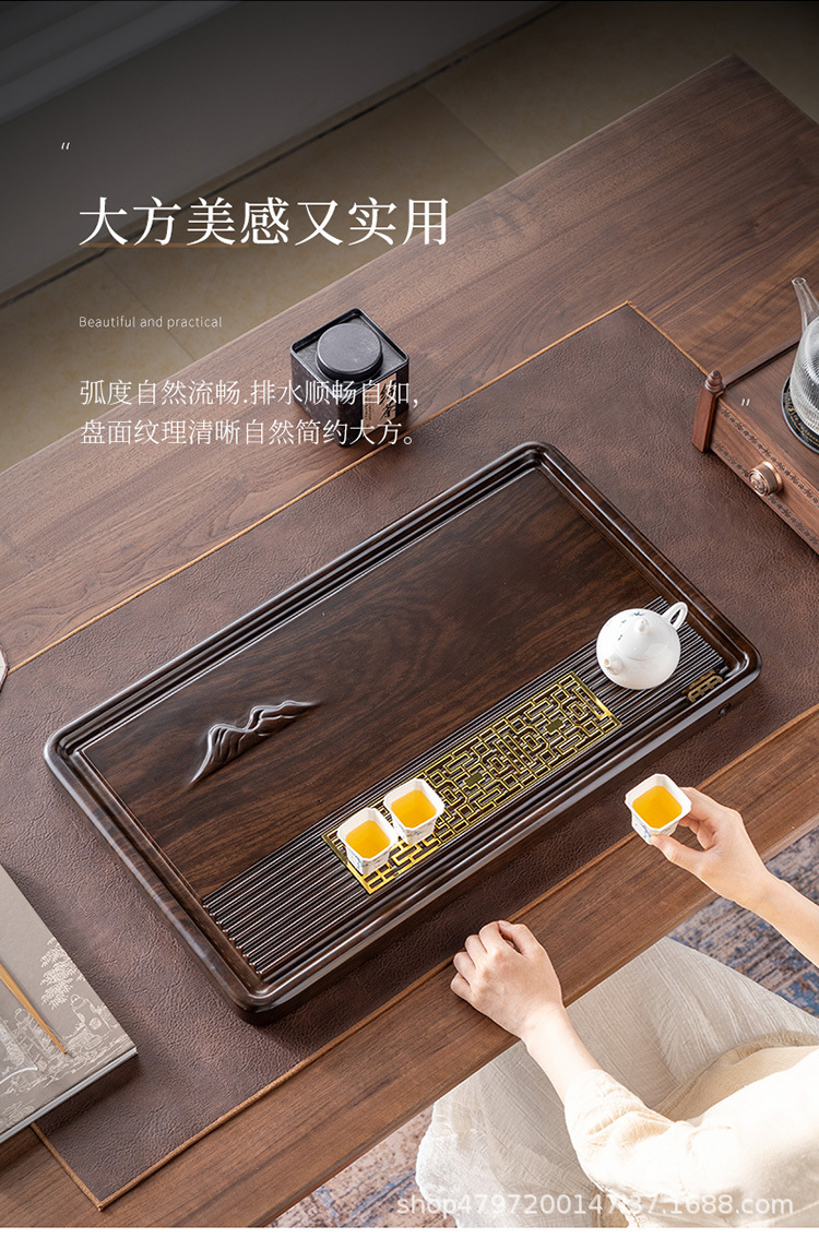 차 트레이 흑단 원목 트레이 가정용 차 세트 간단한 배수 차 바다 통나무 대형 차 테이블스토어 가기