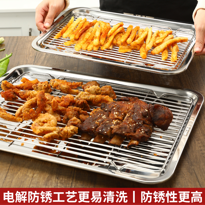 네트 오일 제어 랙이있는 304 스테인레스 스틸 사각형 플레이트 상업용 트레이 물 필터 오일 필터 플레이트 델리 디스플레이 바베큐 네트 랙