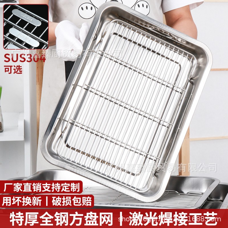 네트 오일 제어 랙이있는 304 스테인레스 스틸 사각형 플레이트 상업용 트레이 물 필터 오일 필터 플레이트 델리 디스플레이 바베큐 네트 랙스토어 가기
