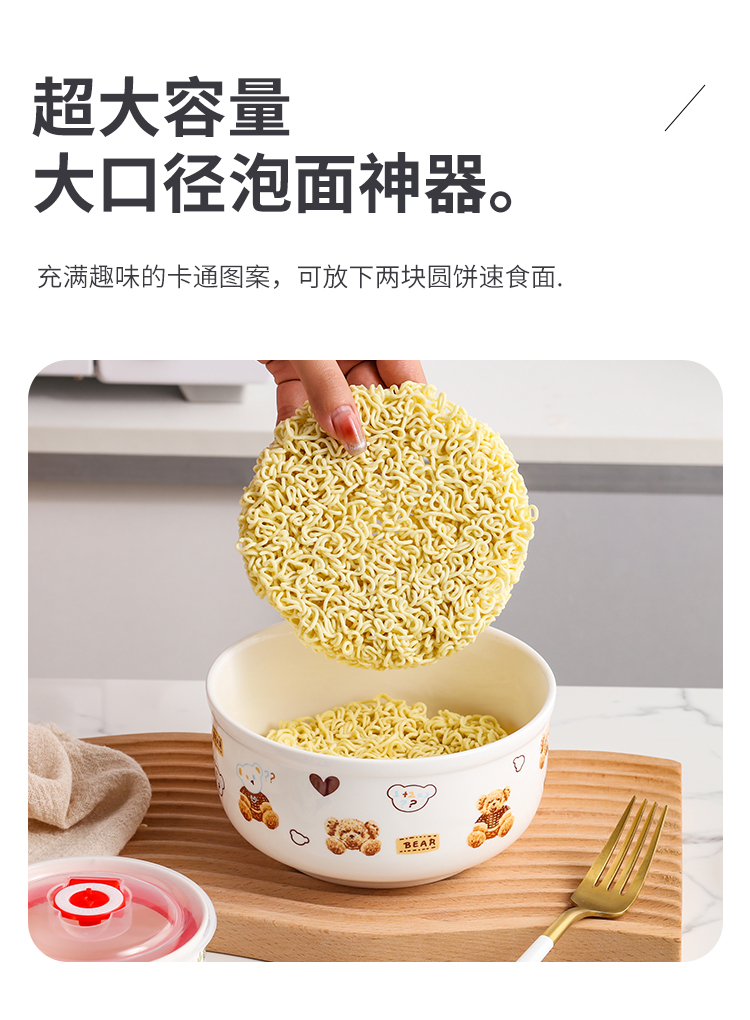 세라믹 신선보관그릇 3종세트 라면그릇 전자레인지 도시락통 뚜껑 포함 기숙사 냉장고 도시락 대형 Mi Jikei스토어 가기