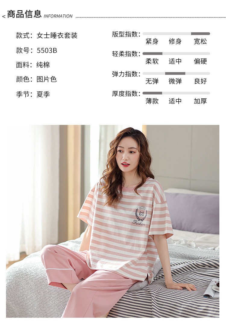 여성용 순면 잠옷, 여름 반팔 크롭 팬츠, 가슴 패드가 있는 루즈한 잠옷, 여성용 여름 홈웨어 세트스토어 가기