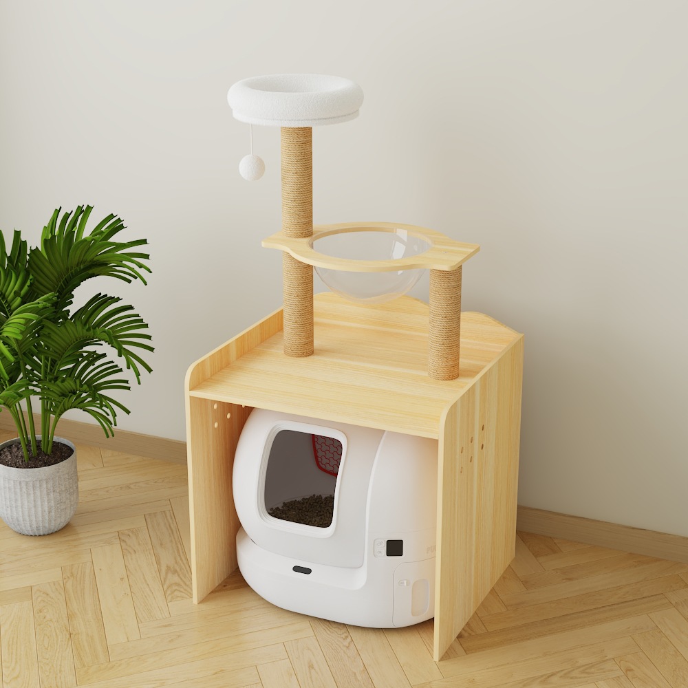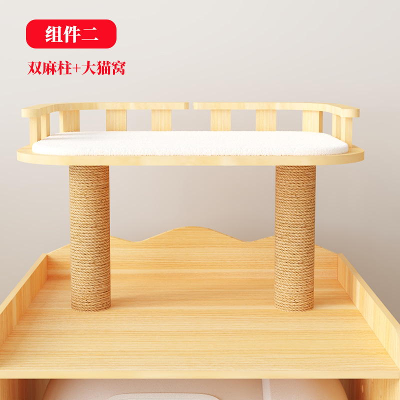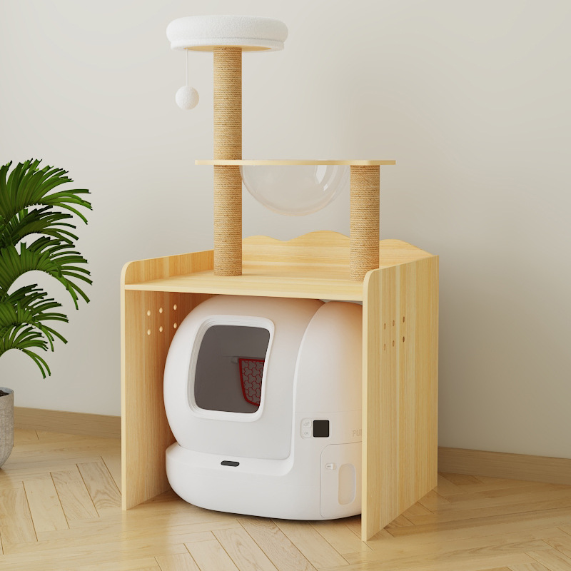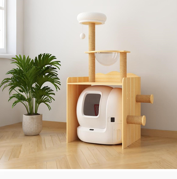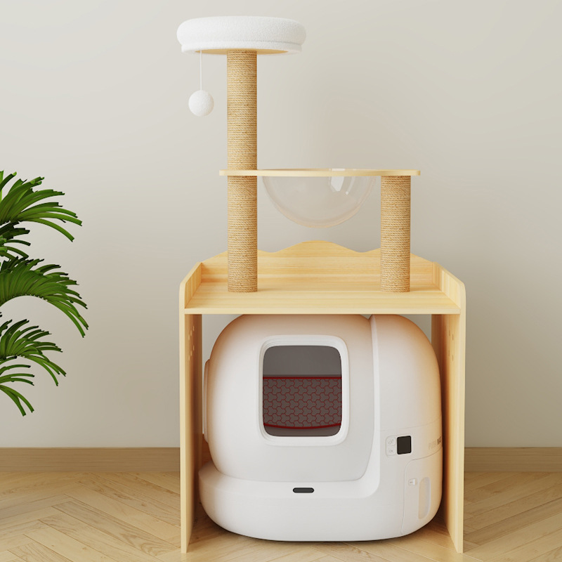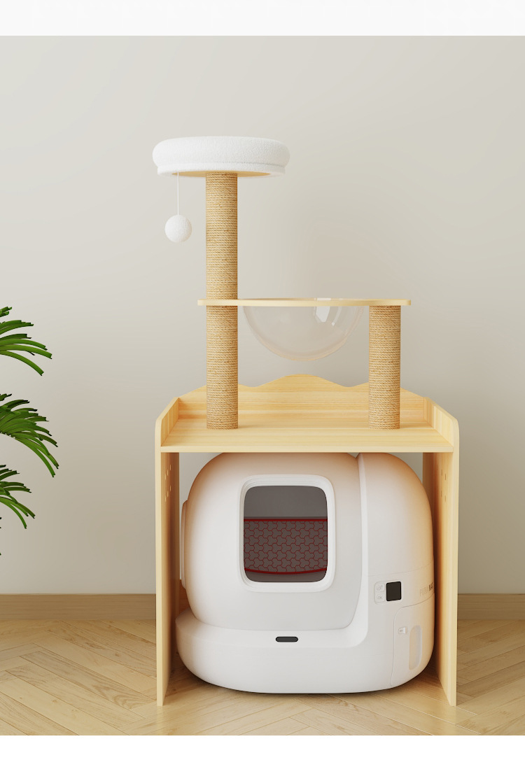 다기능 단단한 나무 애완 동물 캐비닛, 고양이 쓰레기통, 화장실 캐비닛, 대형 단단한 나무 고양이 클라이밍 프레임, 일체형 고양이 가구