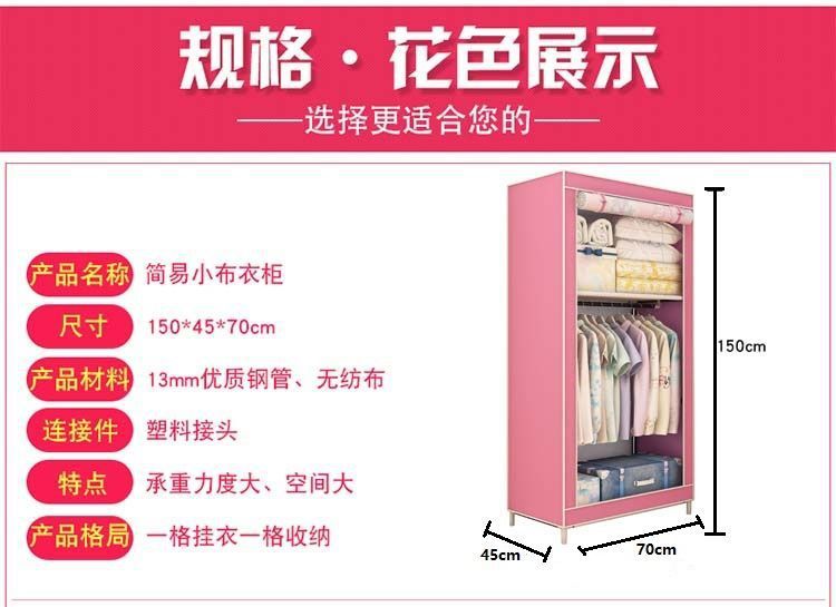 심플하고 세련된 옷장, 심플하고 모던하며 경제적인 조립식 옷장 수납장, 싱글 강철 파이프 옷장, 기숙사 옷장스토어 가기