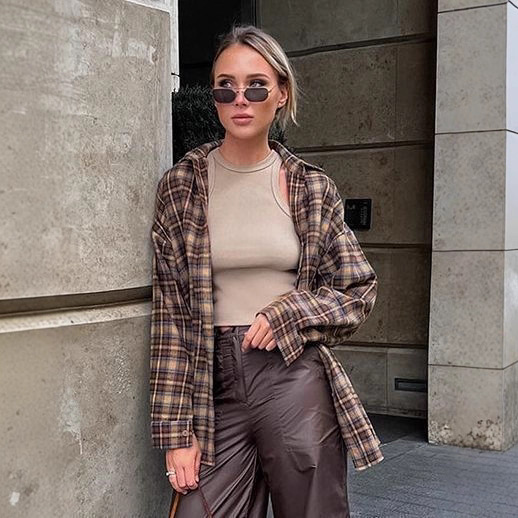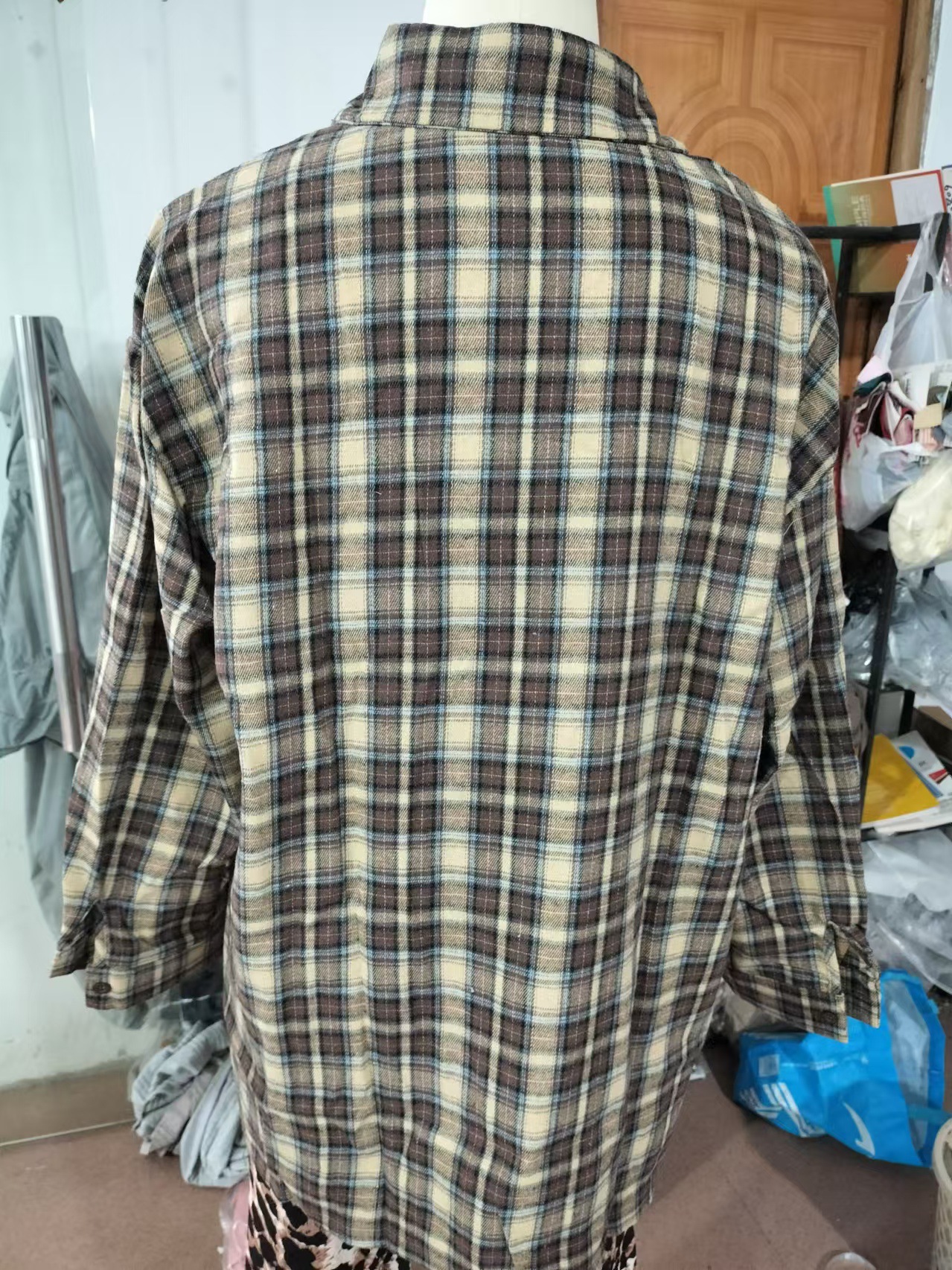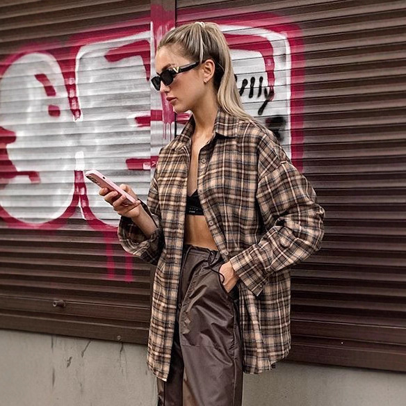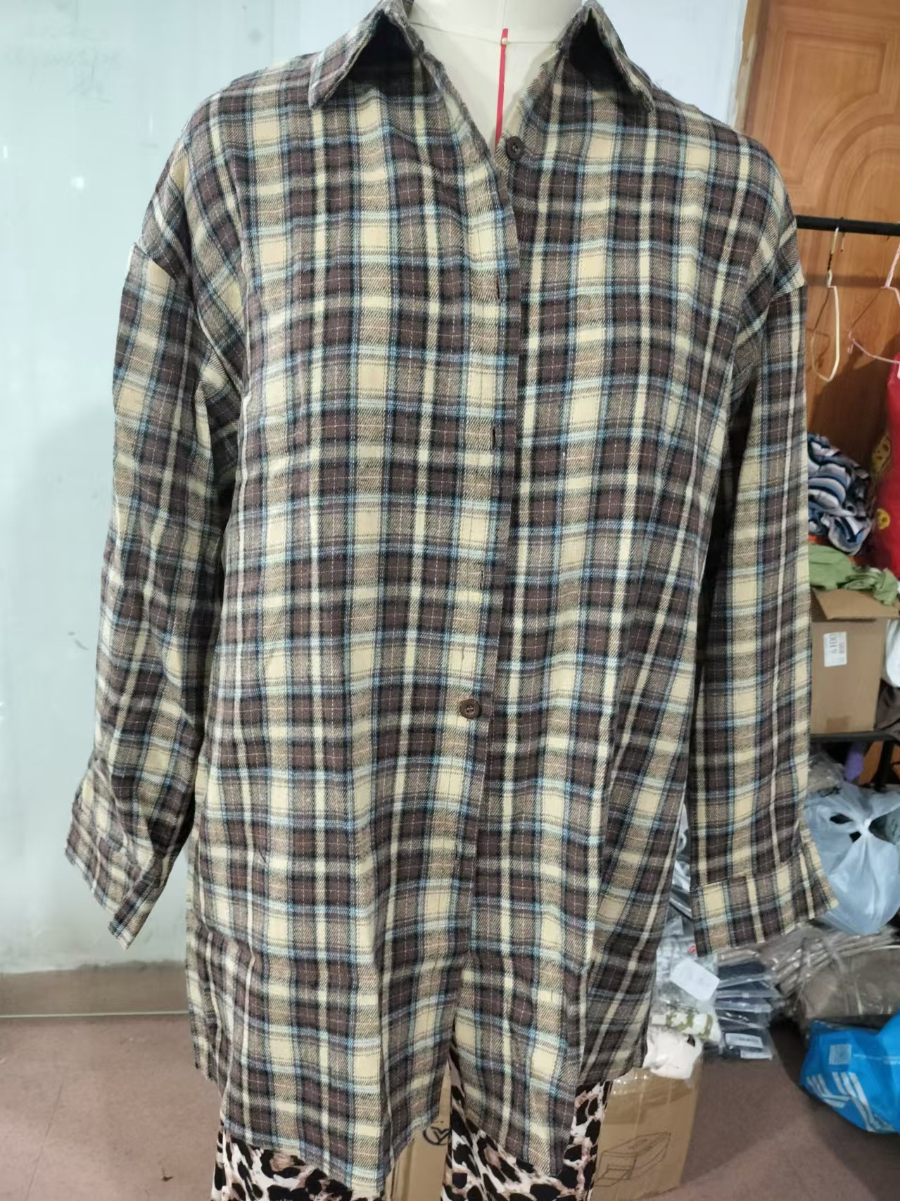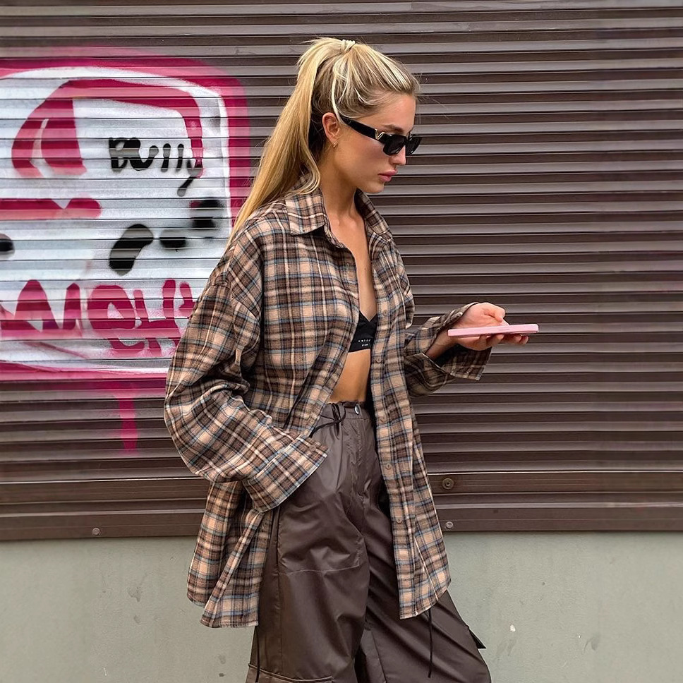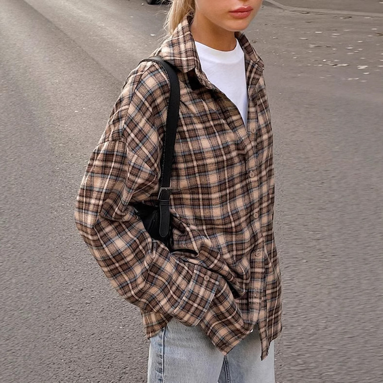 유럽 ​​국경 간 봄 복고풍 패션 느슨한 격자 무늬 셔츠 여성 긴 디자인 바닥 격자 무늬 셔츠스토어 가기