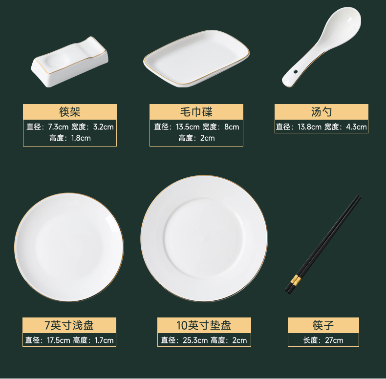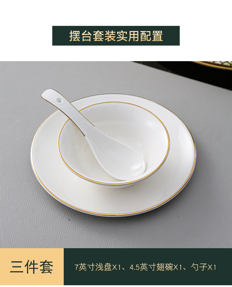4피스 레스토랑 4피스 세트 3피스 호텔 테이블 세트 3피스 수프 그릇 식기 장식품 세트 접시 세트 도자기 접시 골드