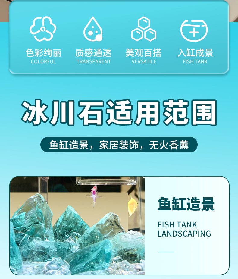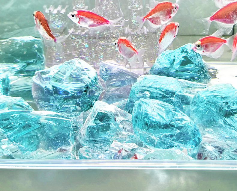 인터넷 연예인 수조 조경 얼음 블루 크리스탈 스톤 베이스 모래 수족관 베트남어 수조 장식 크리스탈 유리 스톤 베이스 모래