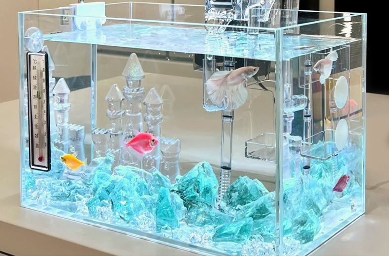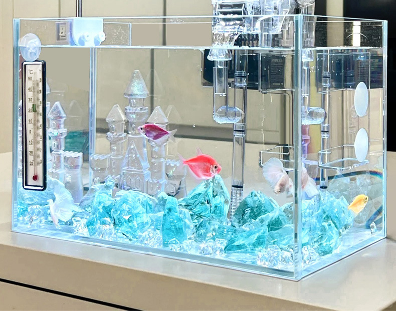인터넷 연예인 수조 조경 얼음 블루 크리스탈 스톤 베이스 모래 수족관 베트남어 수조 장식 크리스탈 유리 스톤 베이스 모래스토어 가기