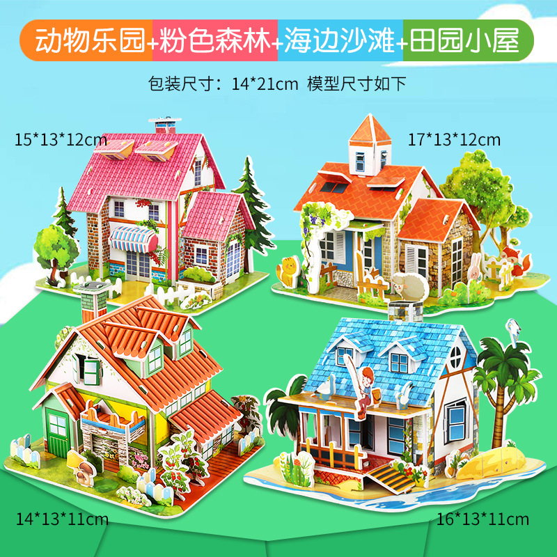 집 종이 모델 조립 삽입 유치원 빌딩 빌라 교육 빌딩 블록 장난감 입체 퍼즐 3D 어린이 수제스토어 가기