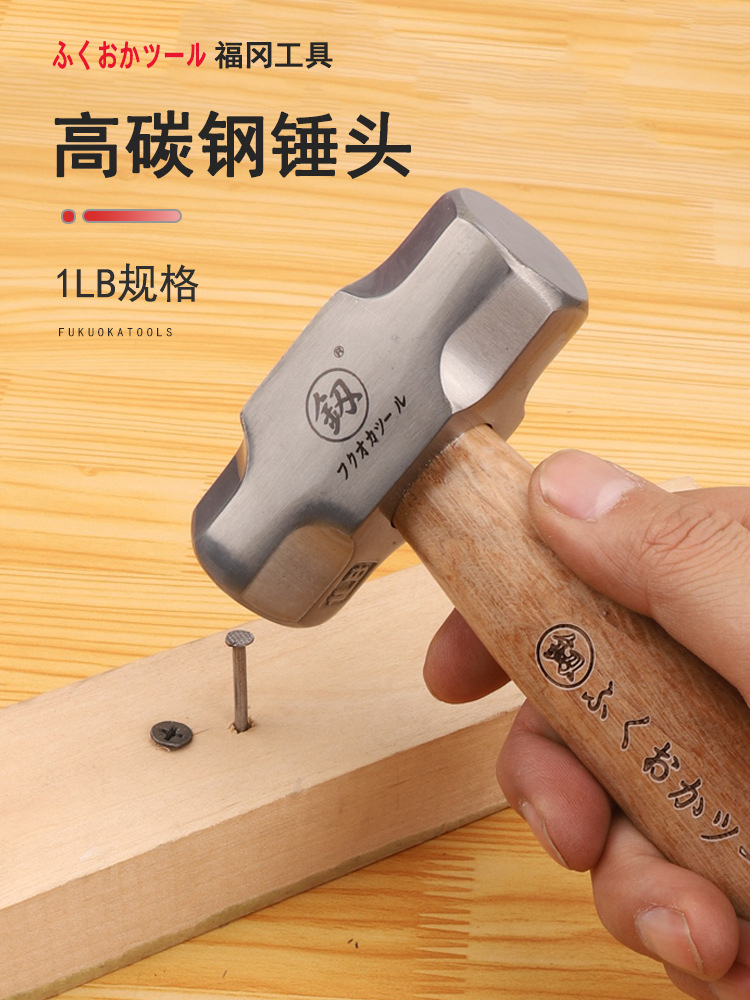 일본 브랜드 후쿠오카 팔각형 망치 석재 망치 나무 손잡이 가정용 망치 미니 망치 단단한 나무 짧은 손잡이 수제 네일 망치스토어 가기
