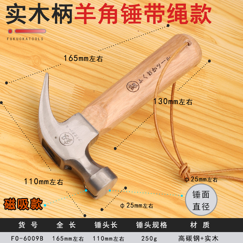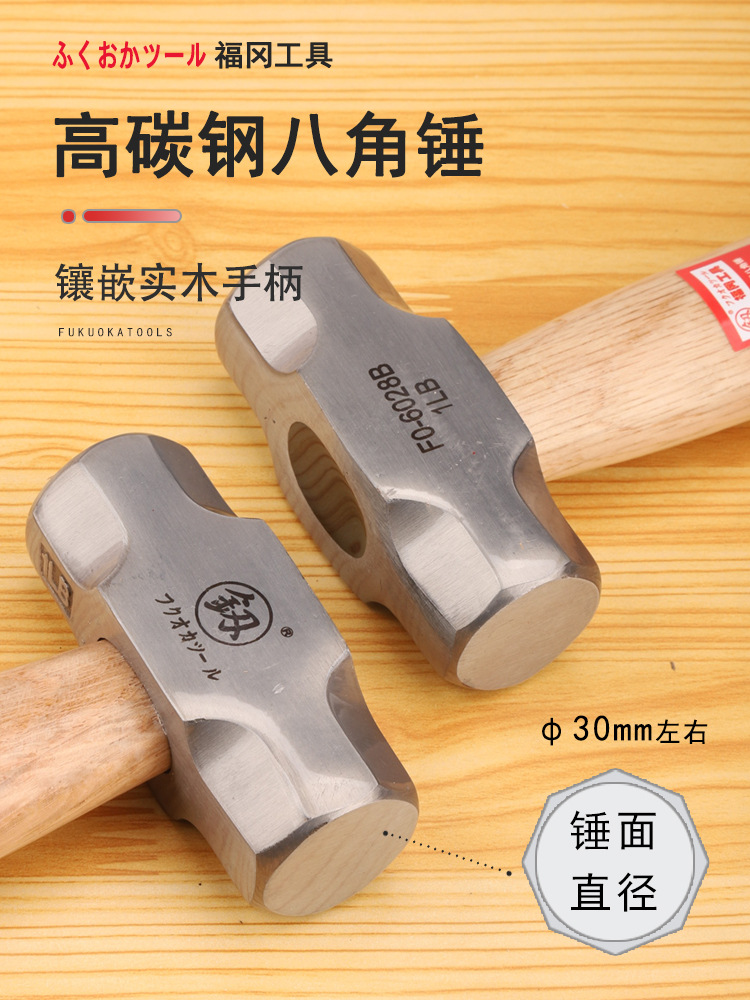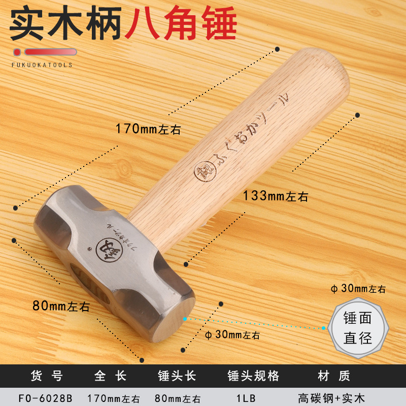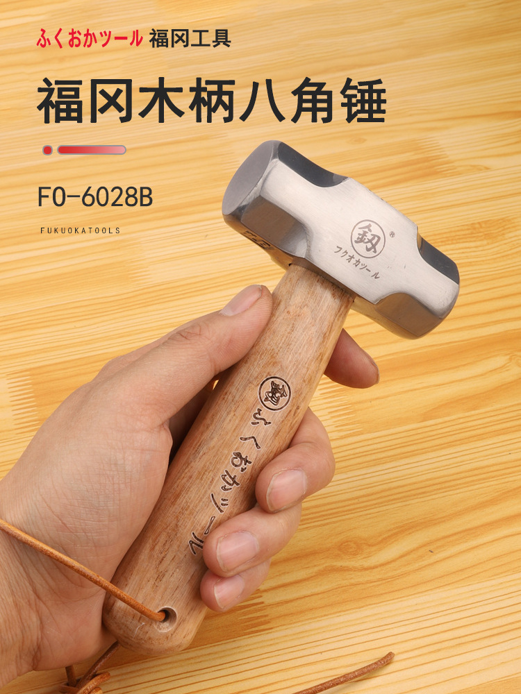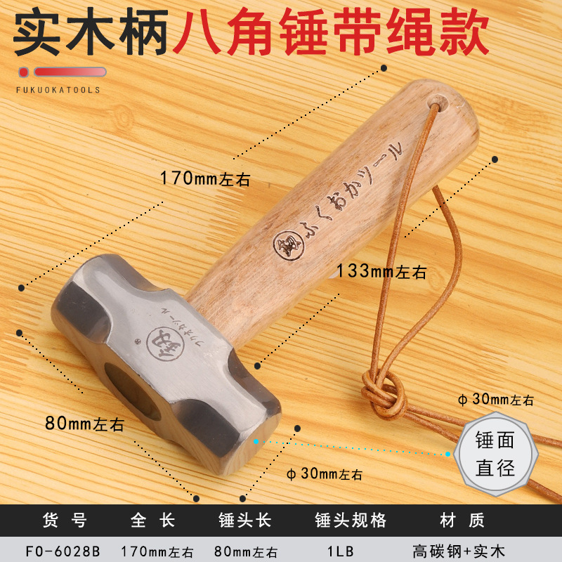 일본 브랜드 후쿠오카 팔각형 망치 석재 망치 나무 손잡이 가정용 망치 미니 망치 단단한 나무 짧은 손잡이 수제 네일 망치