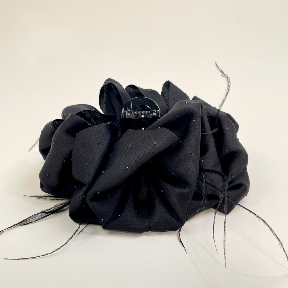 • 블랙 새틴 깃털 집게핀 13cm