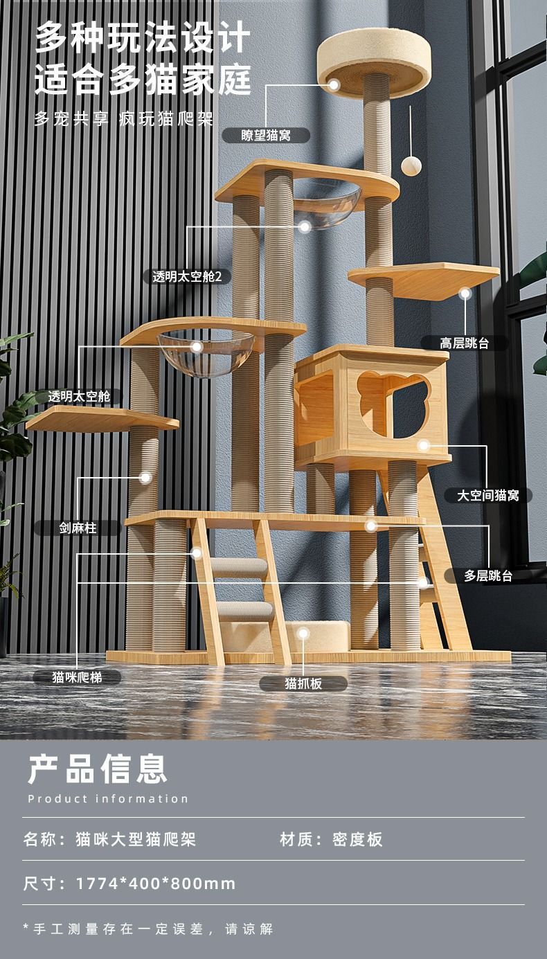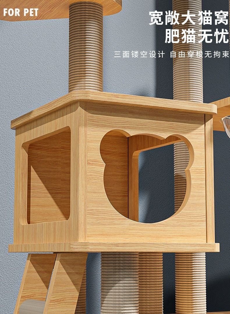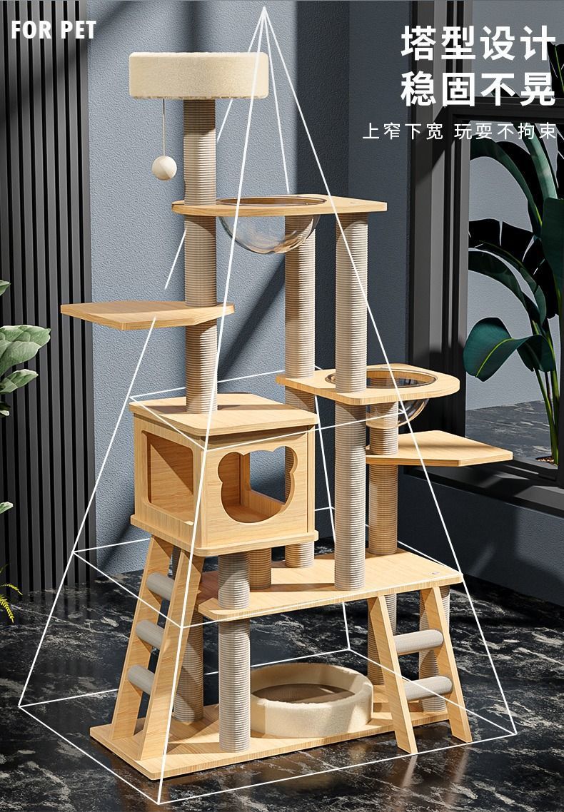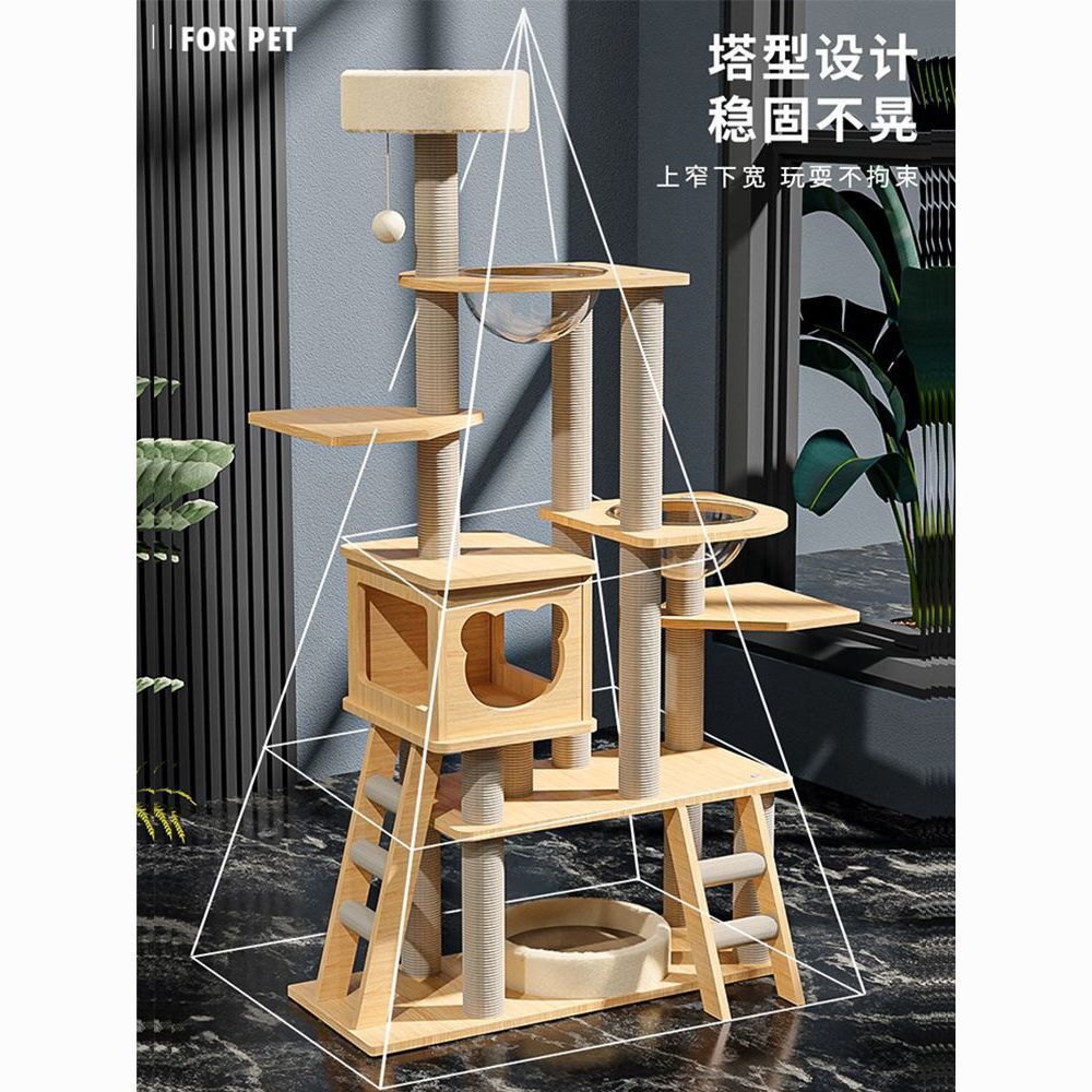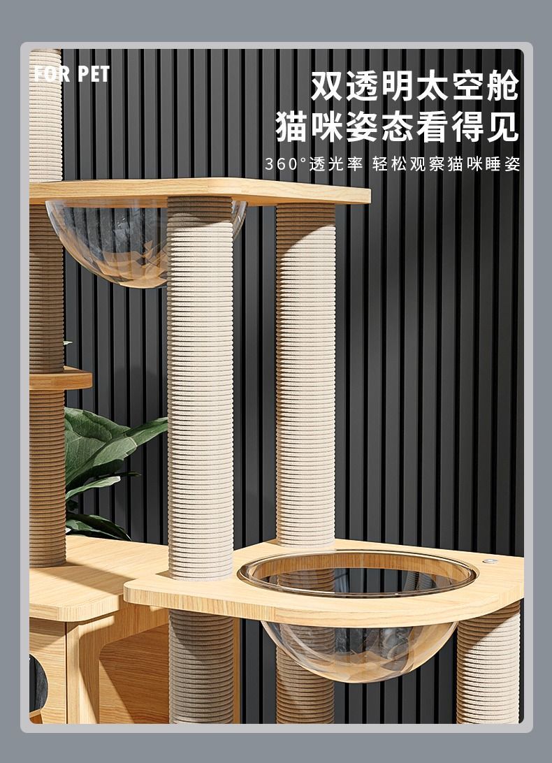 사계절 사용 가능한 대형 우주 캡슐 원목 일체형 고양이 클라이밍 프레임, 고양이 둥지, 고양이 나무, 고양이 스크래치 보드, 고양이 빌라 고양이 장난감스토어 가기