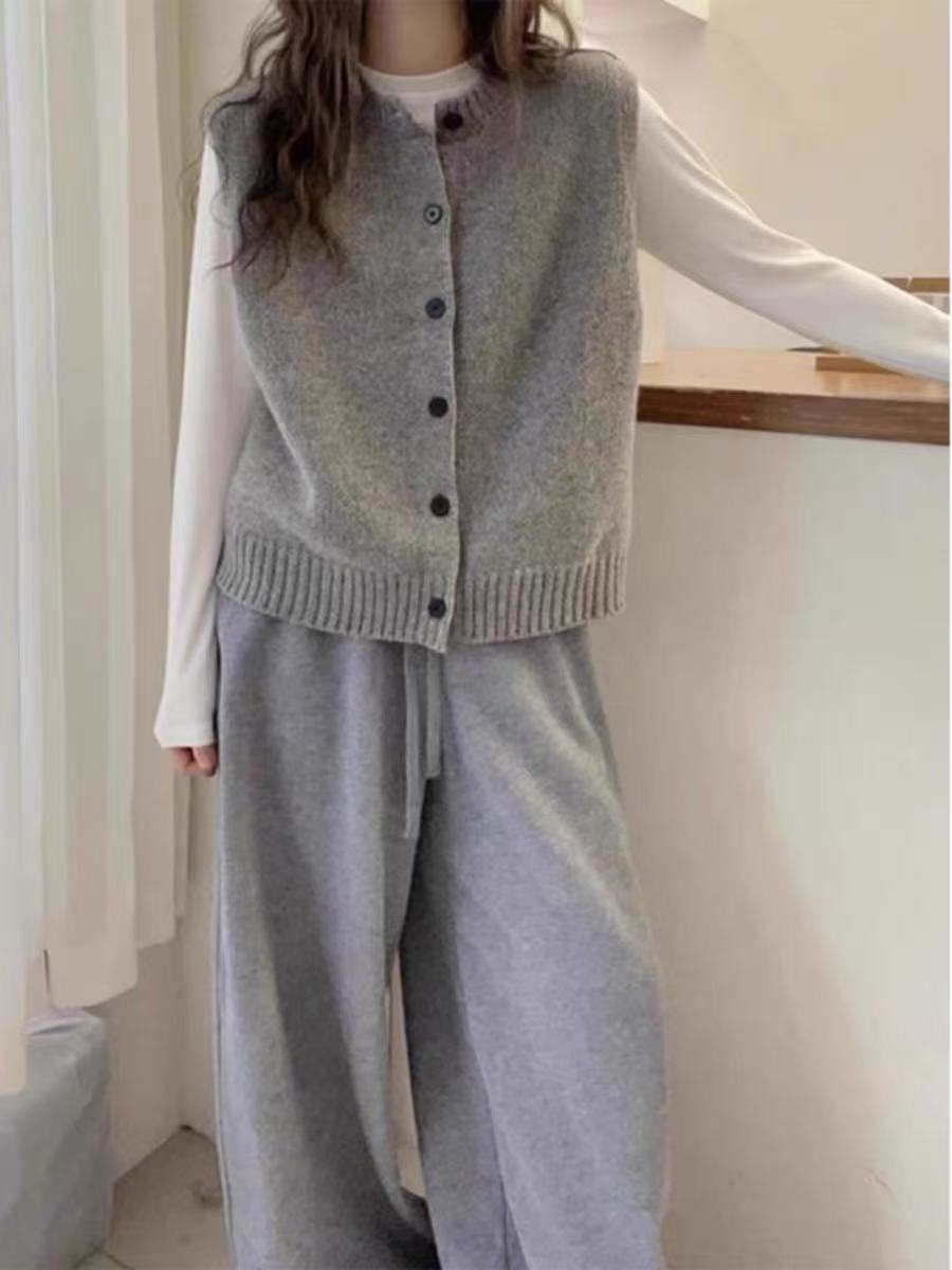 대외 무역 새로운 스타일 심플하고 다재다능한 루즈 레이어드 니트 조끼 여성용 기본 민소매 솔리드 컬러 니트 탑