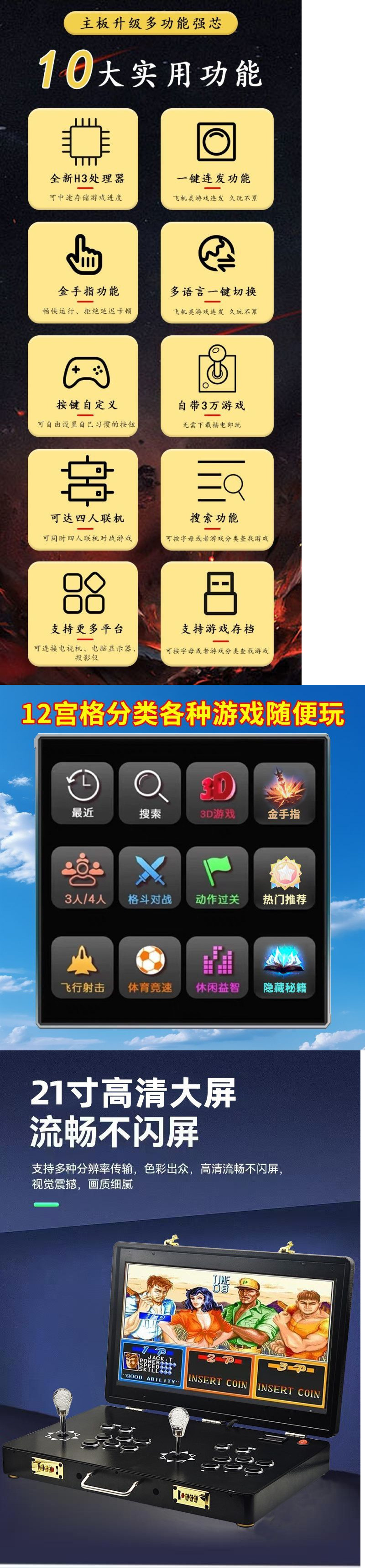 • 12각형 그리드 [연속 발사 기능 포함, 골드 핑거 개정 게임] - 21inch 듀얼 LCD 접이식 모델(무선 핸들 포함) [플러그인 모델]