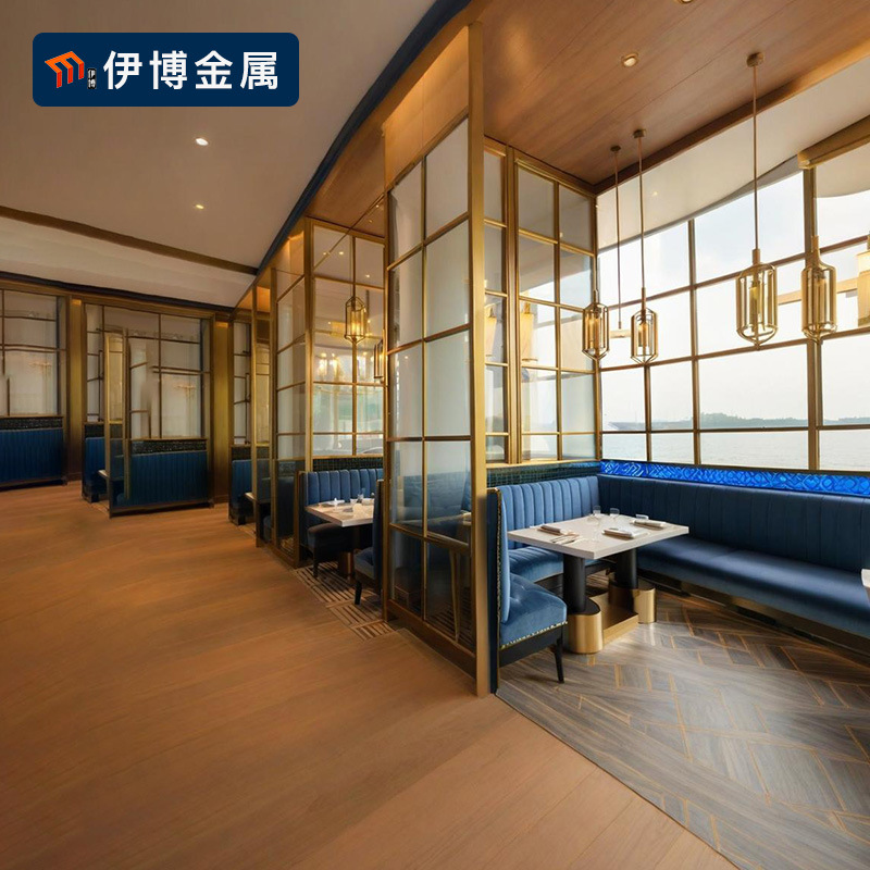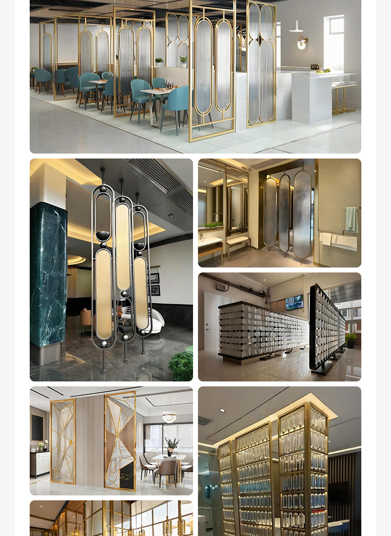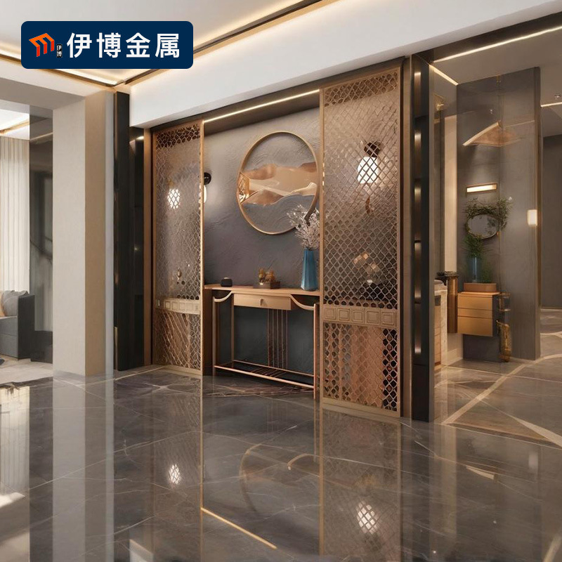 맞춤형 스테인레스 스틸 스크린 파티션 새로운 중국 스타일 호텔 로비 거실 입구 유리 차단 장식 프로젝트