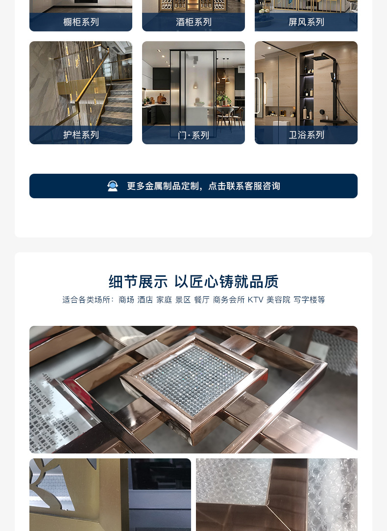 专业生产不锈钢酒柜、橱柜、门、屏风、壁龛等高端金属制品