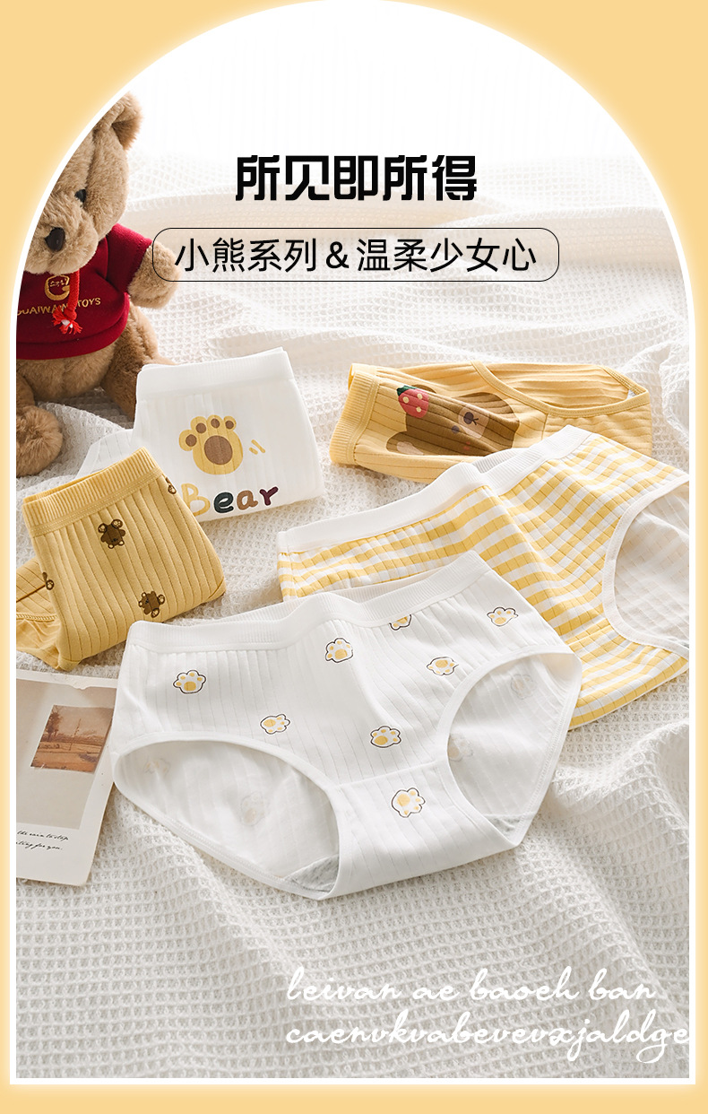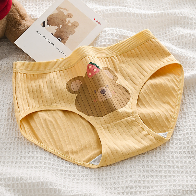 애니메이션 일본 귀여운 소녀 속옷 부드러운 귀여운 곰 더블 레이어 가랑이 통기성 중간 허리 학생 만화 팬티스토어 가기