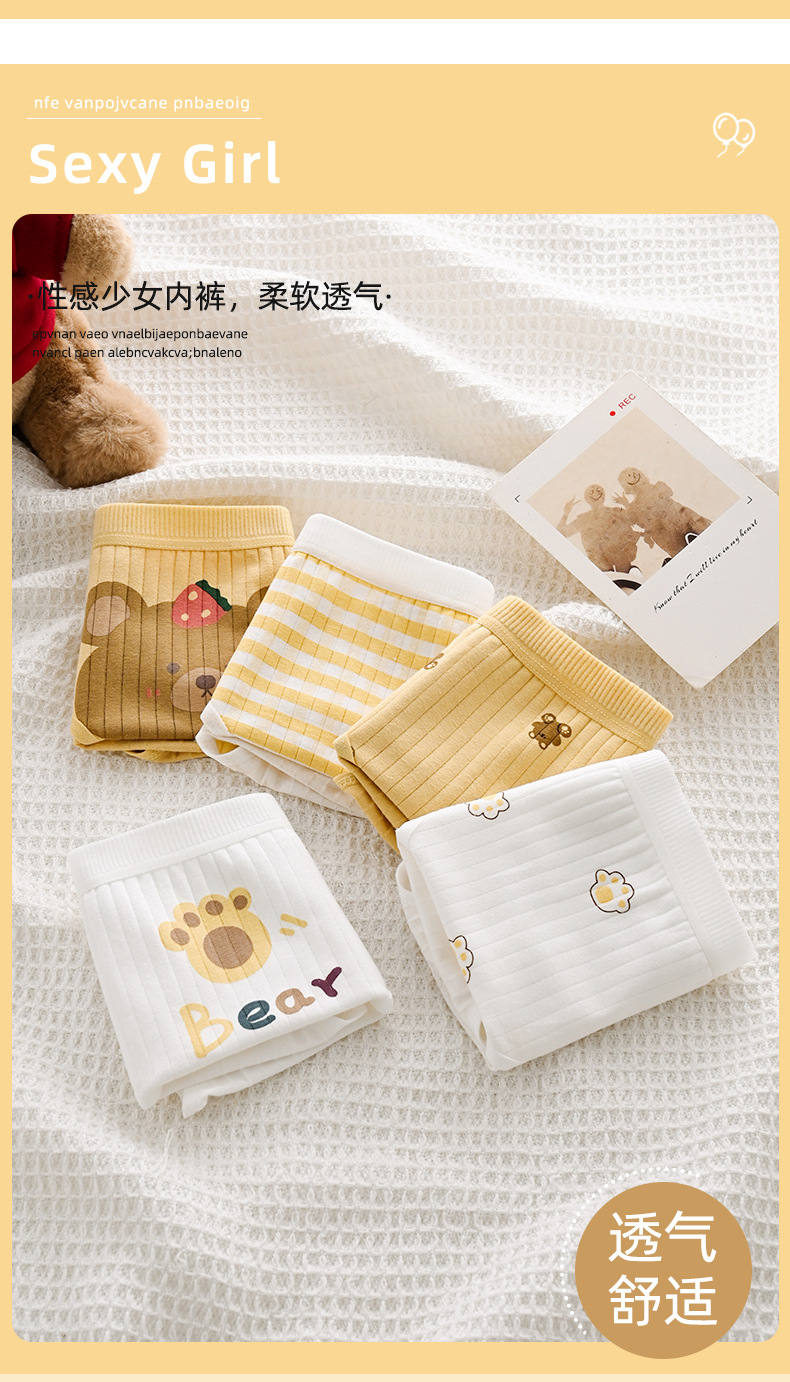 애니메이션 일본 귀여운 소녀 속옷 부드러운 귀여운 곰 더블 레이어 가랑이 통기성 중간 허리 학생 만화 팬티