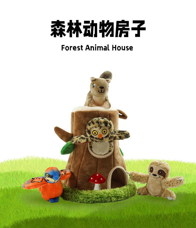 크로스 미러 새로운 숲 동물 집 시리즈 플러시 장난감 나무 게 짖는 개 장난감 개 어금니 인형