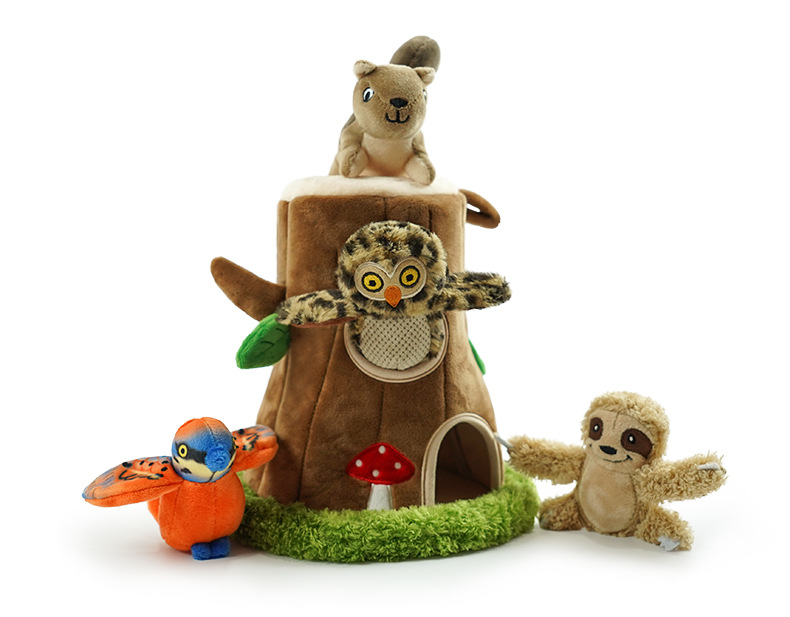 크로스 미러 새로운 숲 동물 집 시리즈 플러시 장난감 나무 게 짖는 개 장난감 개 어금니 인형스토어 가기