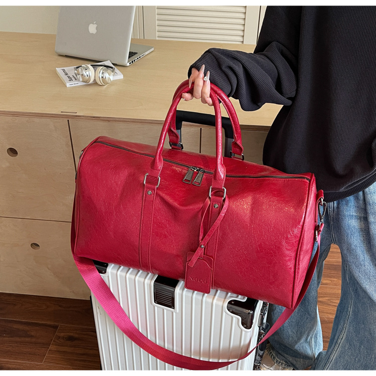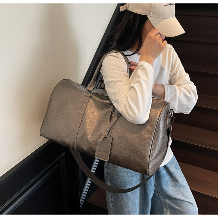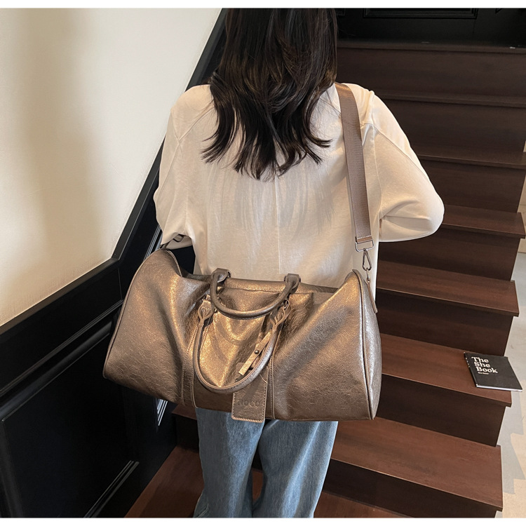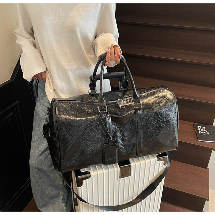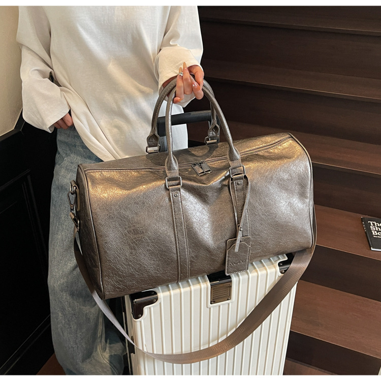 여성을위한 국경 간 휴대용 여행 가방 대용량 PU 가죽 복고풍 의류 수하물 가방 다목적 스포츠 피트니스 가방
