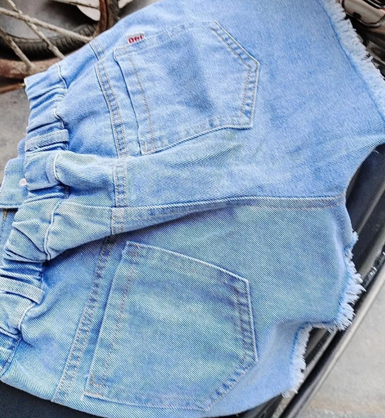 한국 스타일 패셔너블하고 다재다능한 가죽 라벨 데님 반바지 여아복 아동 여름 트렌디 팬츠 홍콩 스타일 캐주얼 팬츠스토어 가기