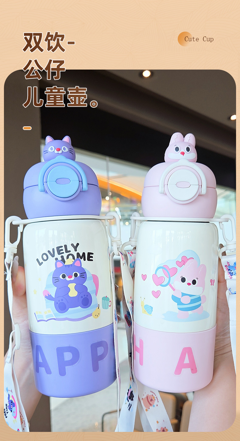 귀여운 만화 인형 어린이 보온병 컵 316 스테인레스 스틸 식품 등급 고가치 이중 음료 학생 밀짚 컵스토어 가기