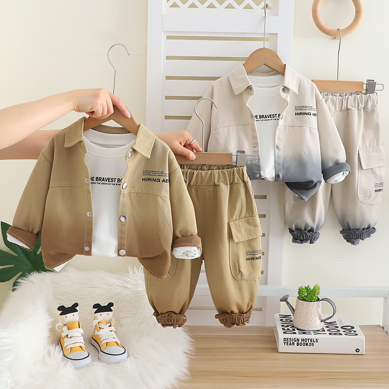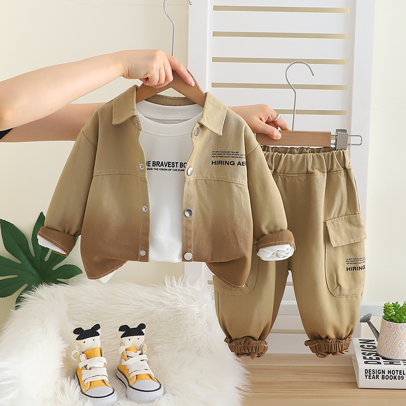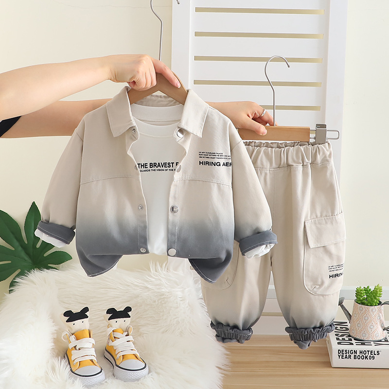 2025 잘 생긴 어린 소년 그라데이션 작업복 카디건 3 피스 세트 1-3-4 세 유행 어린이 가을 옷 도매