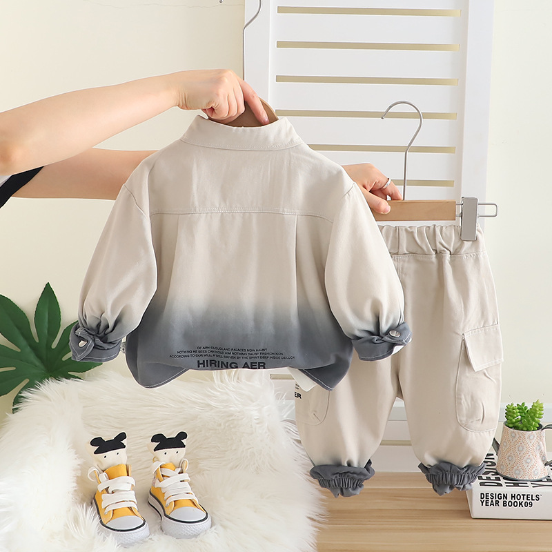 2025 잘 생긴 어린 소년 그라데이션 작업복 카디건 3 피스 세트 1-3-4 세 유행 어린이 가을 옷 도매스토어 가기