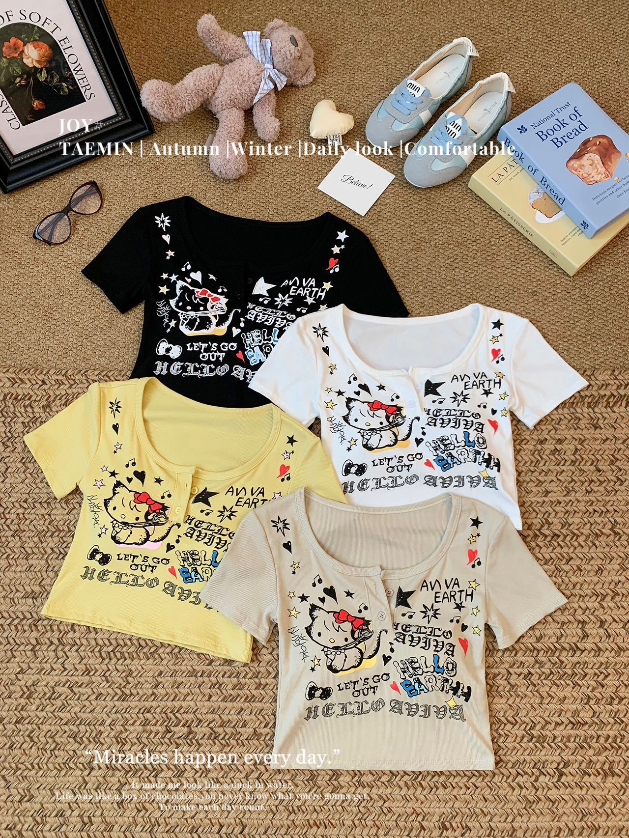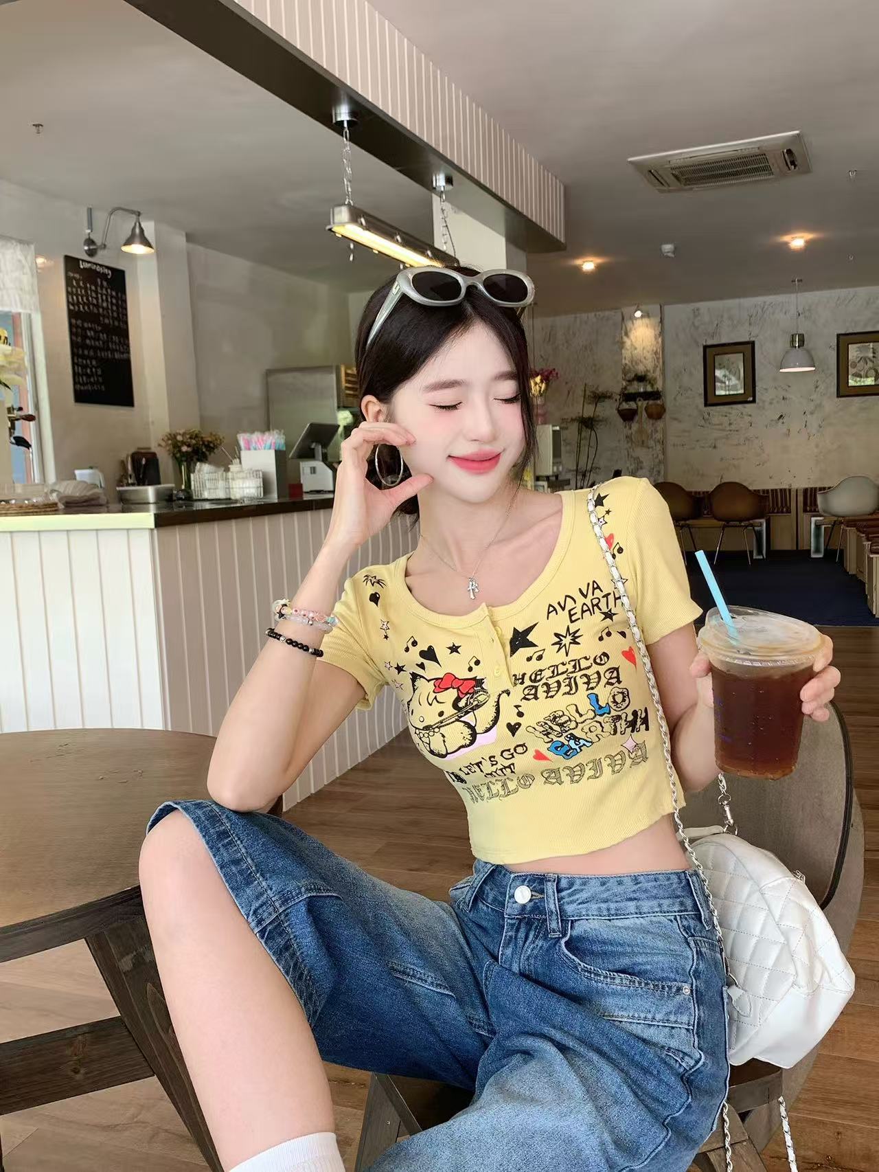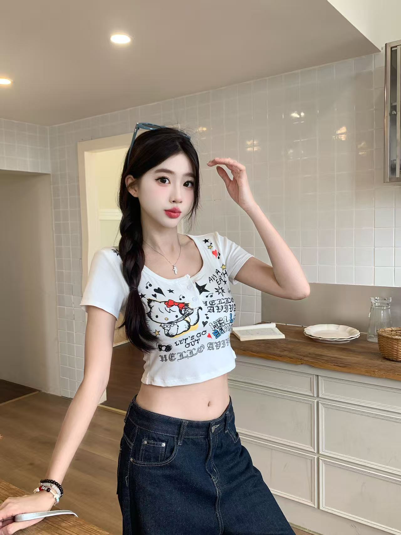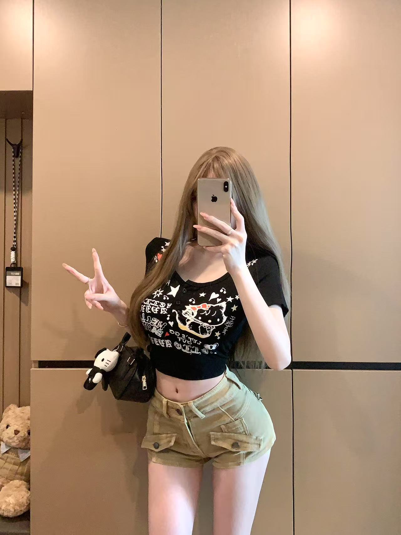 66005 # 도파민 소녀 풀 프린트 헬로 키티 캐미솔 여성 여름 스트리트 핫 소녀 짧은 크롭 탑