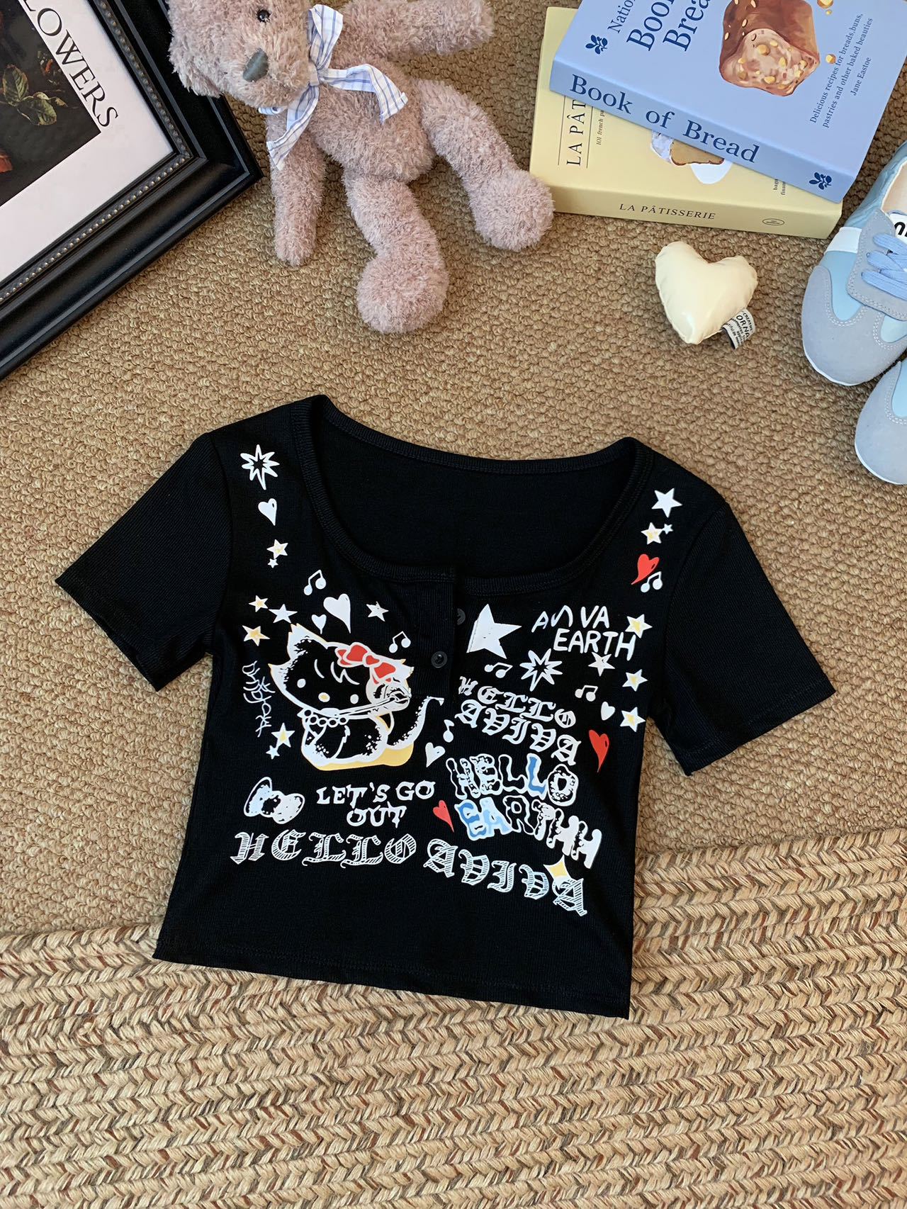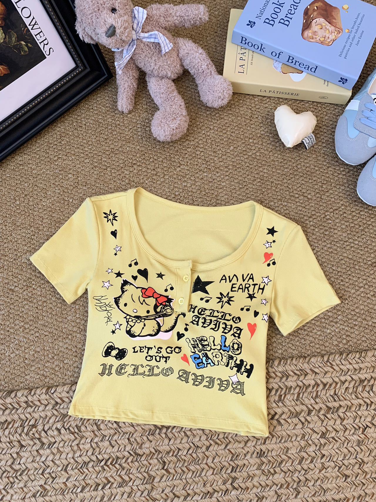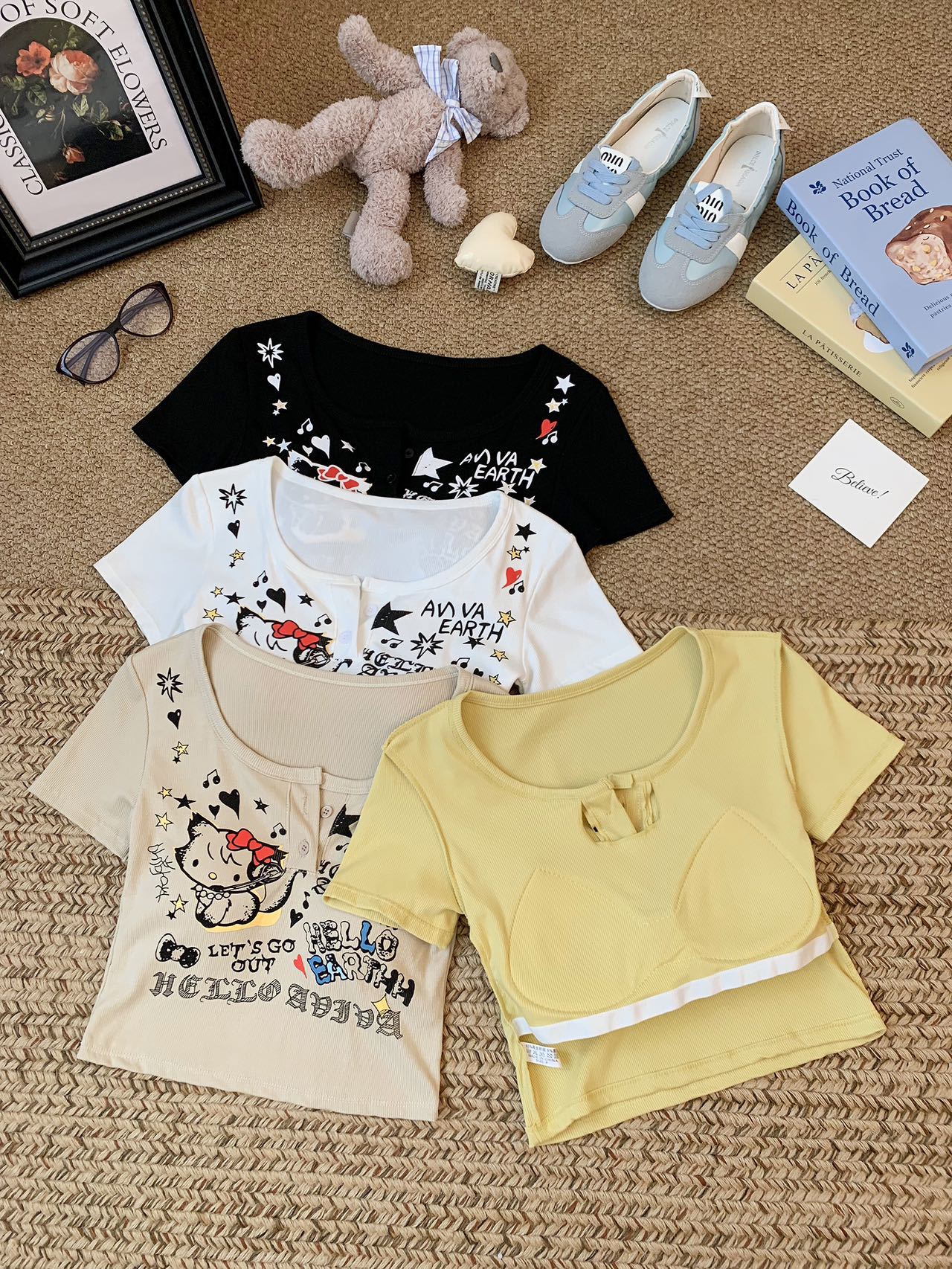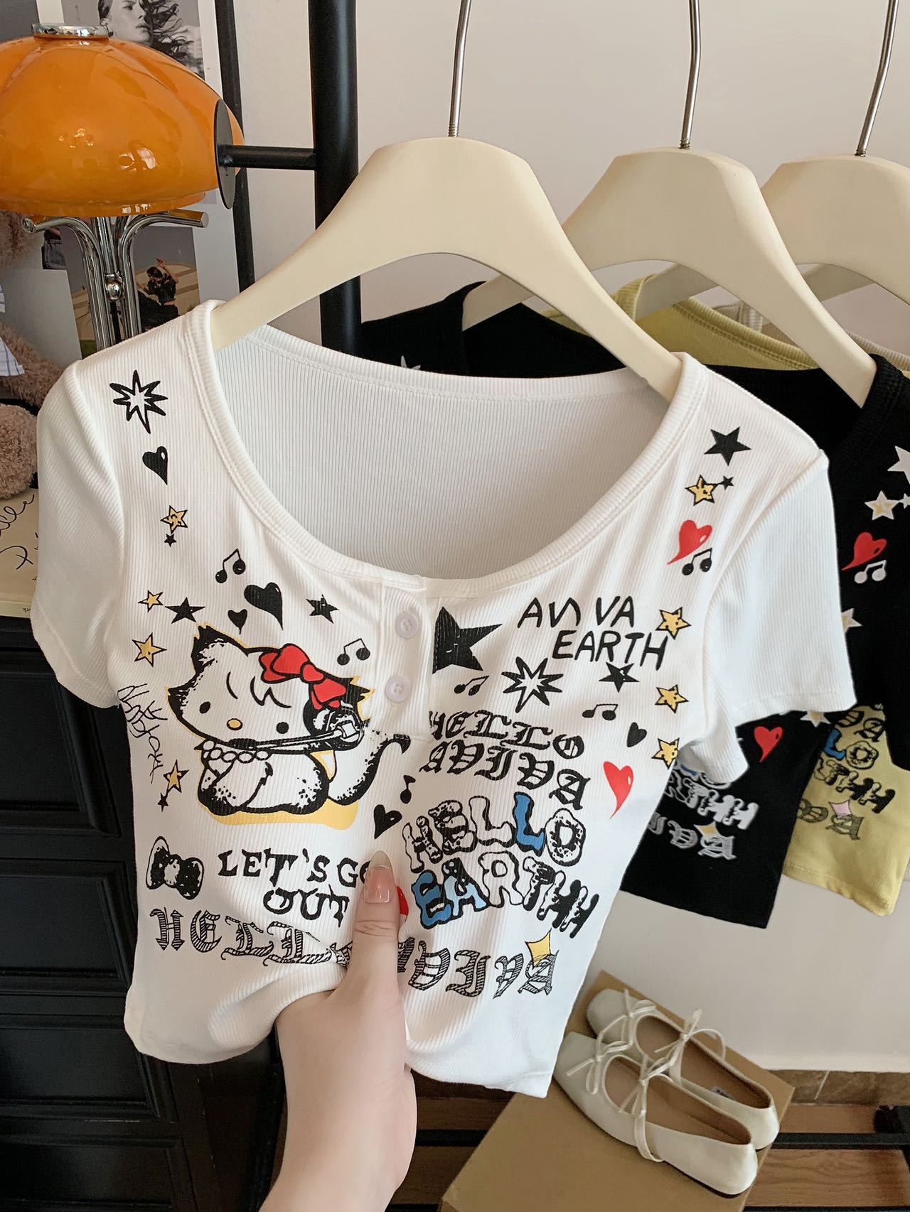 66005 # 도파민 소녀 풀 프린트 헬로 키티 캐미솔 여성 여름 스트리트 핫 소녀 짧은 크롭 탑