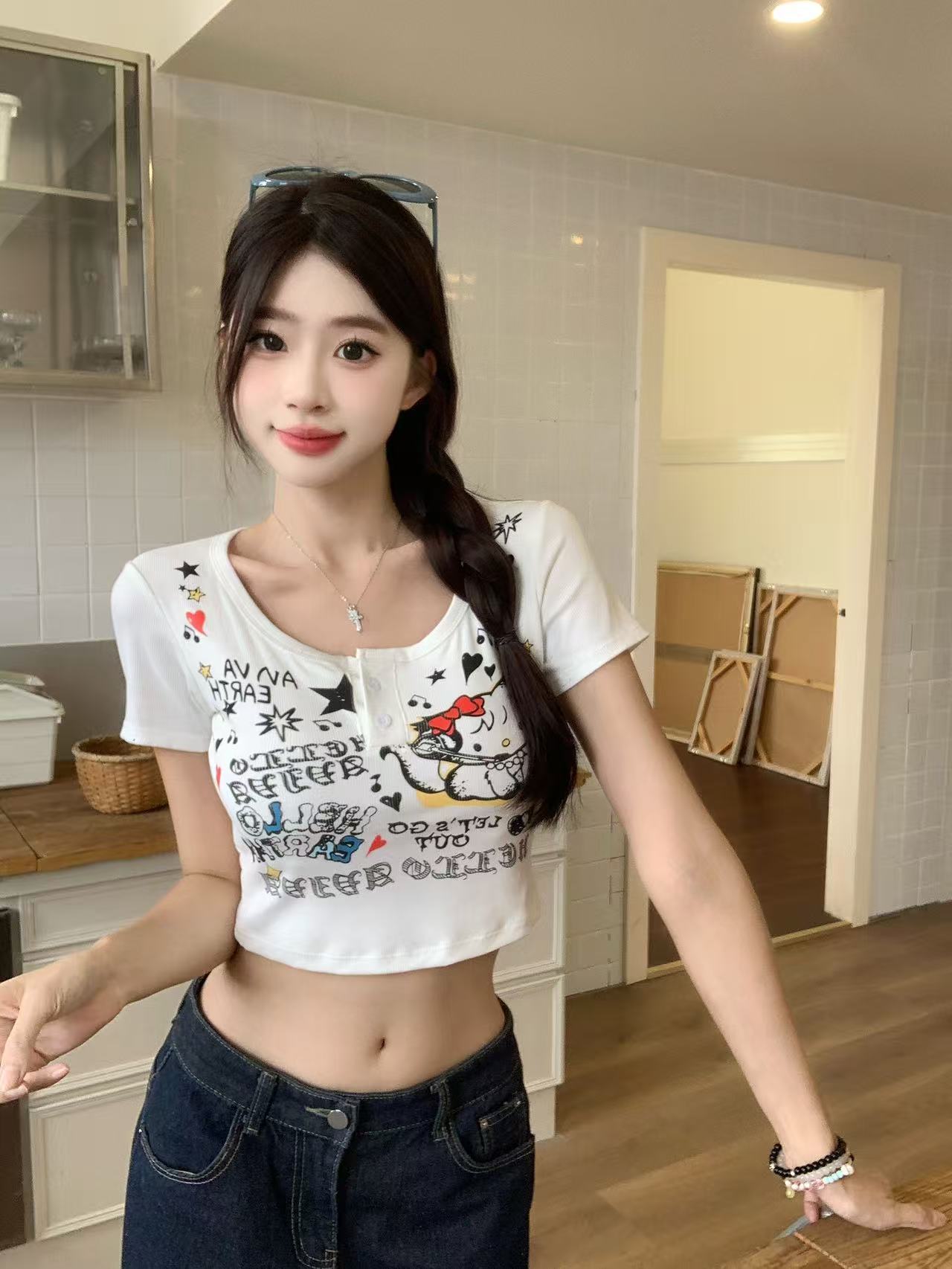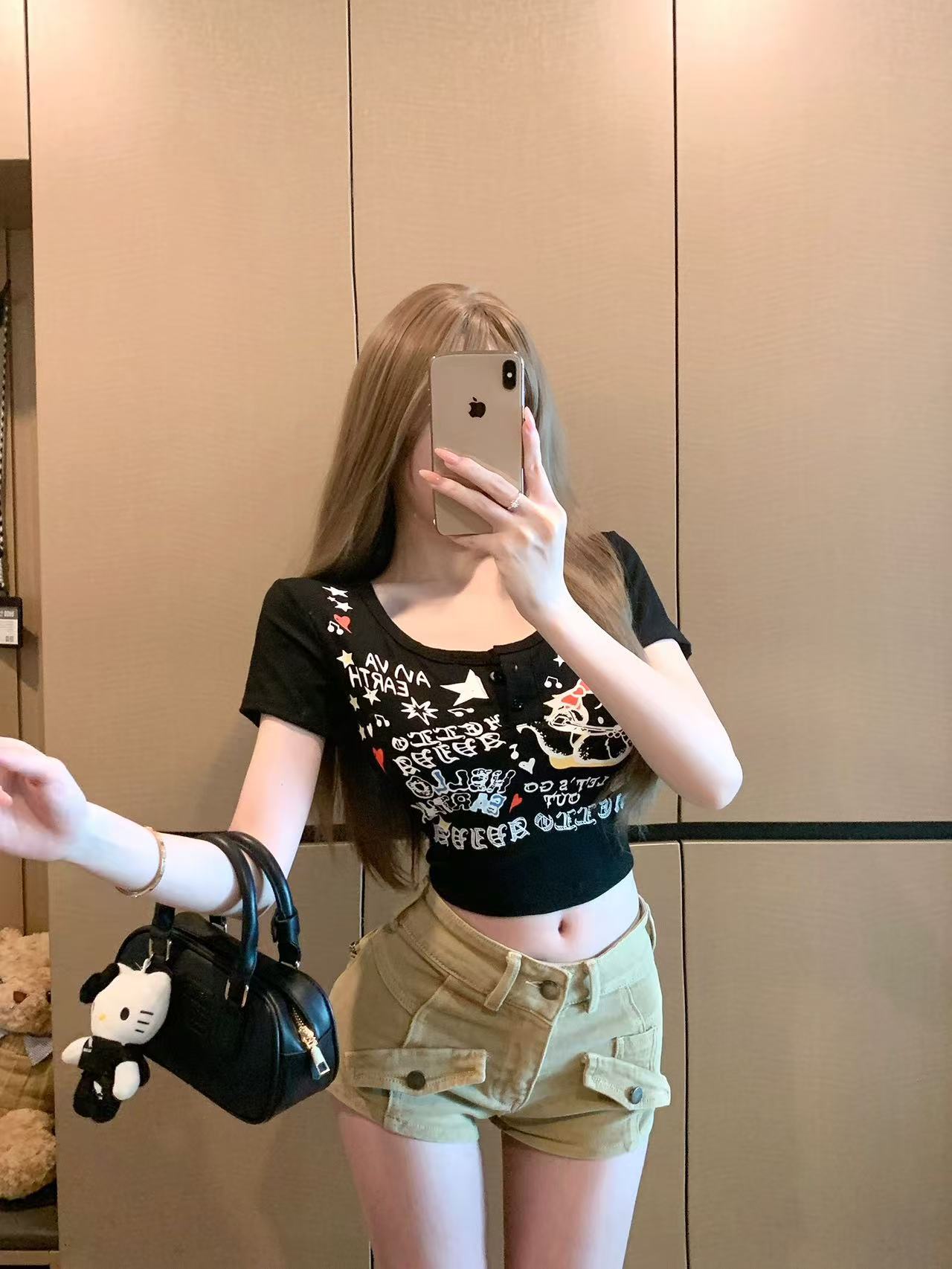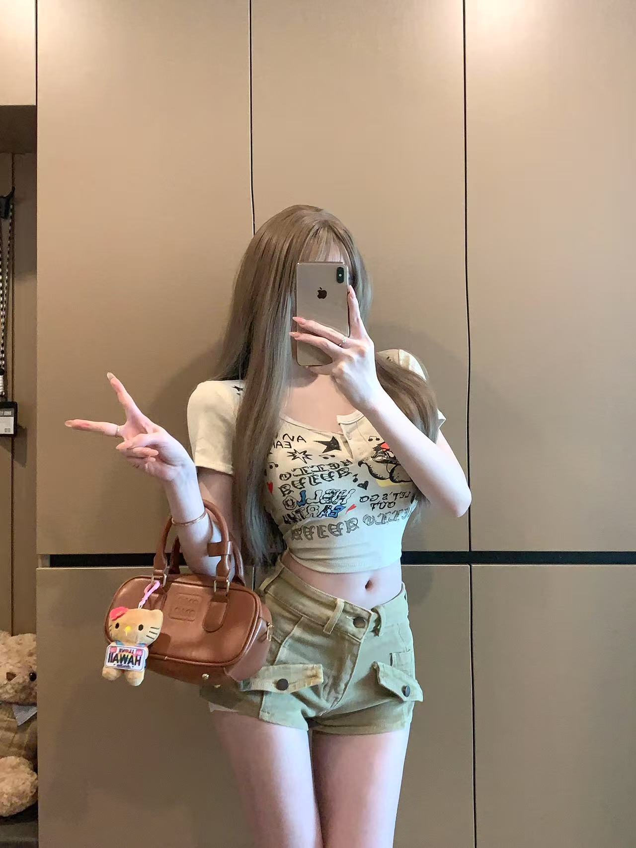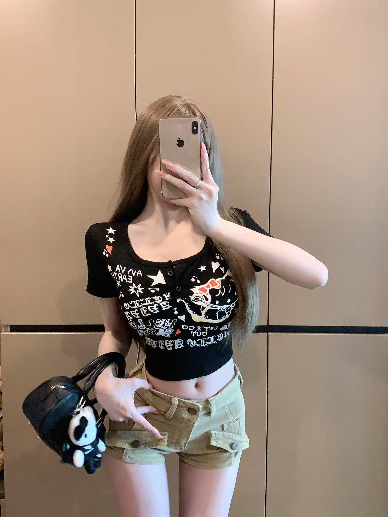 66005 # 도파민 소녀 풀 프린트 헬로 키티 캐미솔 여성 여름 스트리트 핫 소녀 짧은 크롭 탑