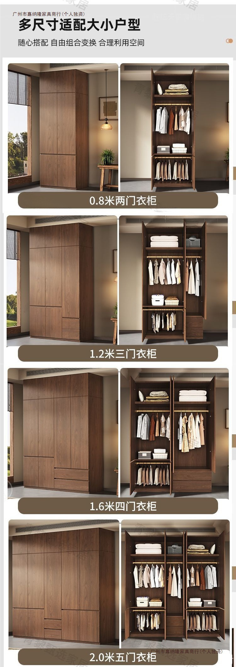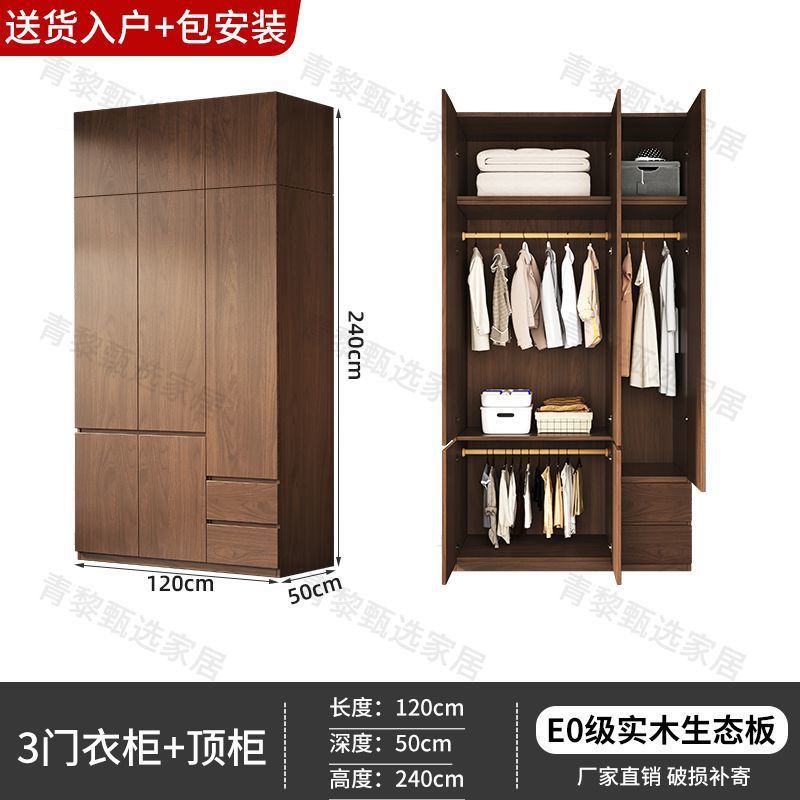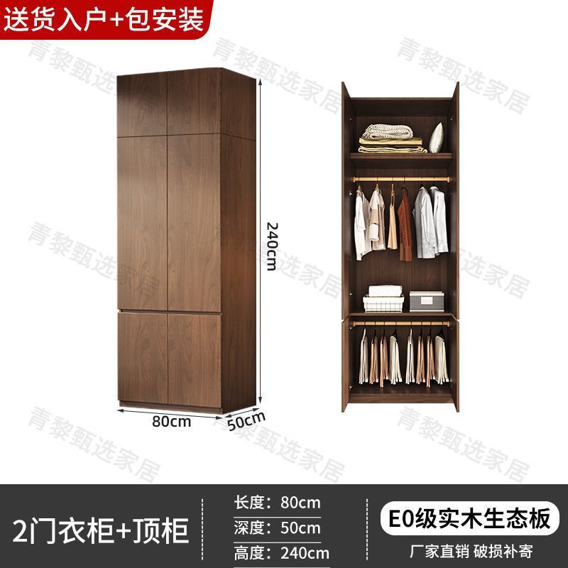 • 업그레이드 0.8m 옷장 + 상단 캐비닛 [ 2.4m 높이 ] 원목 호두 색상