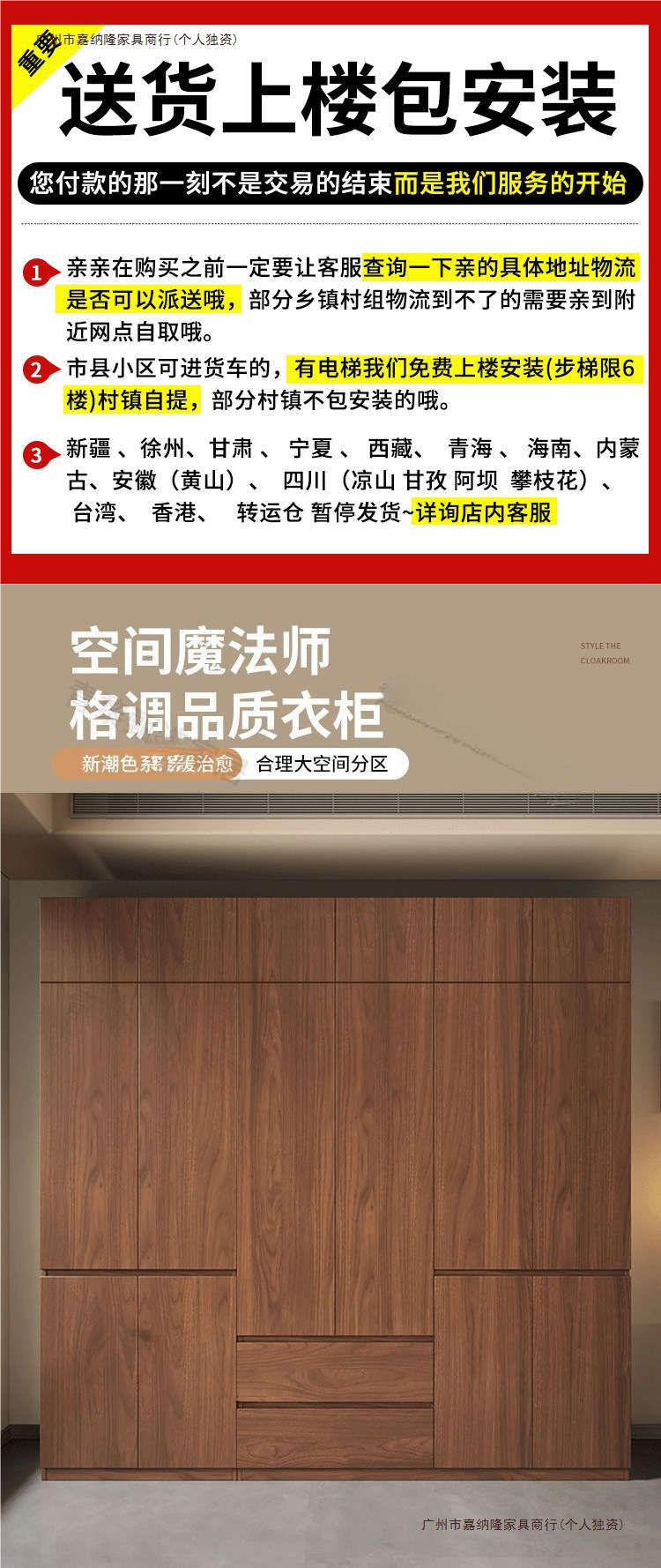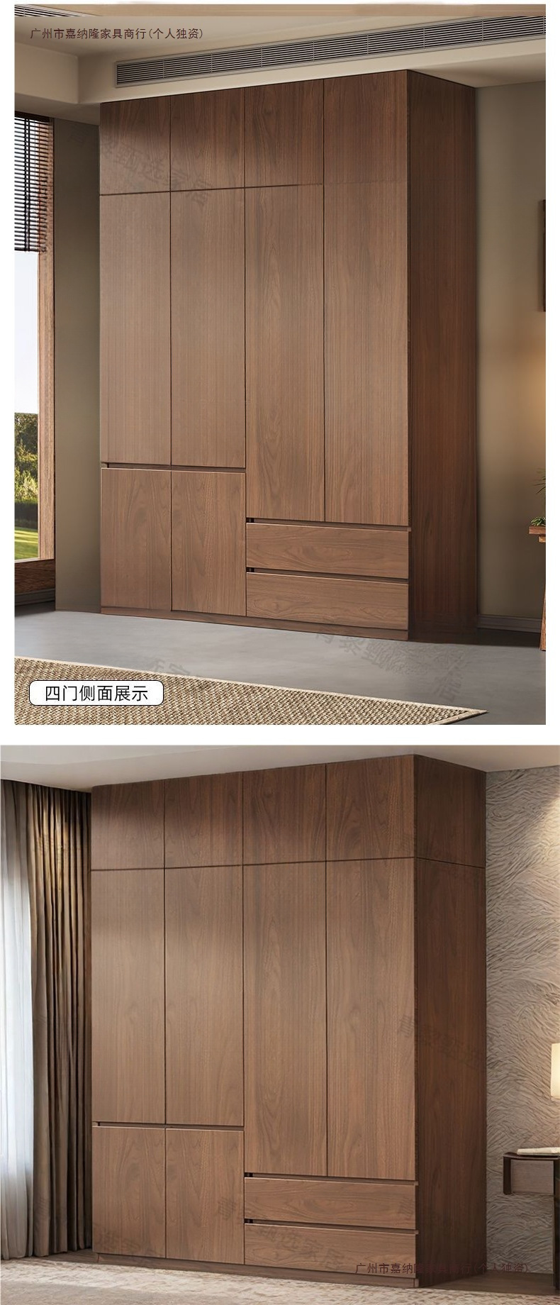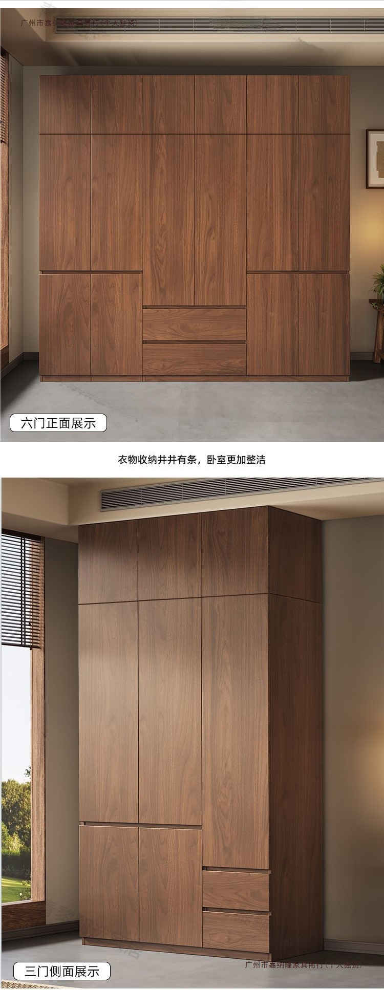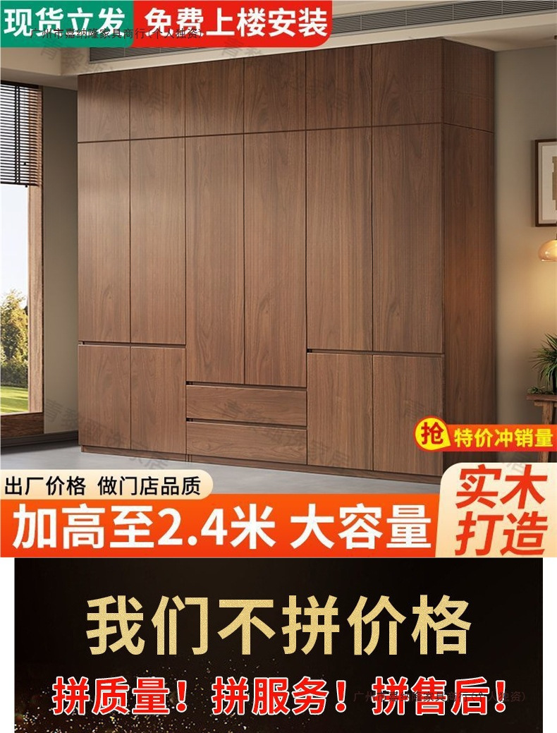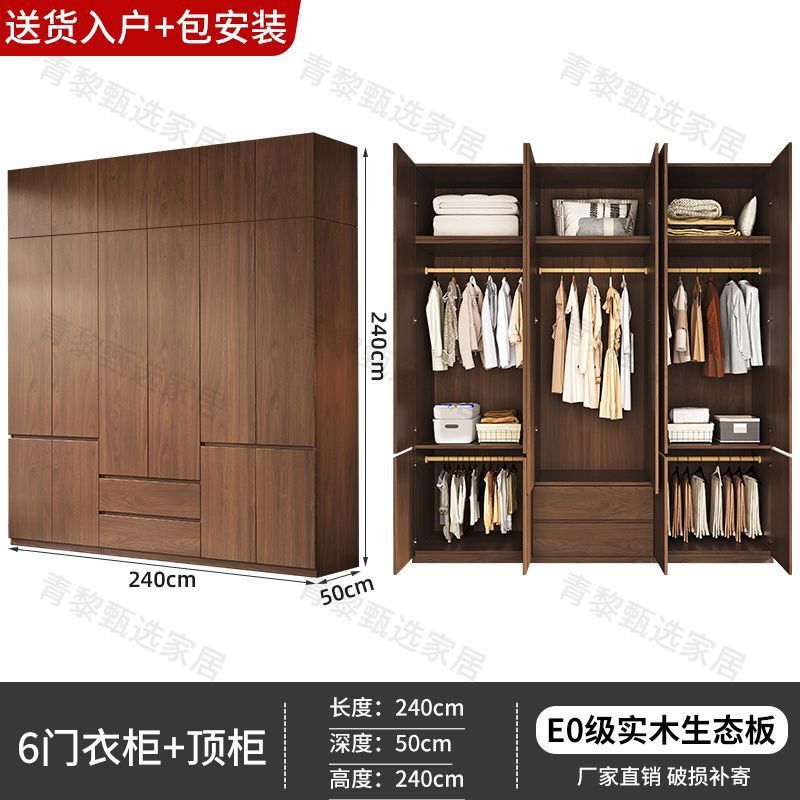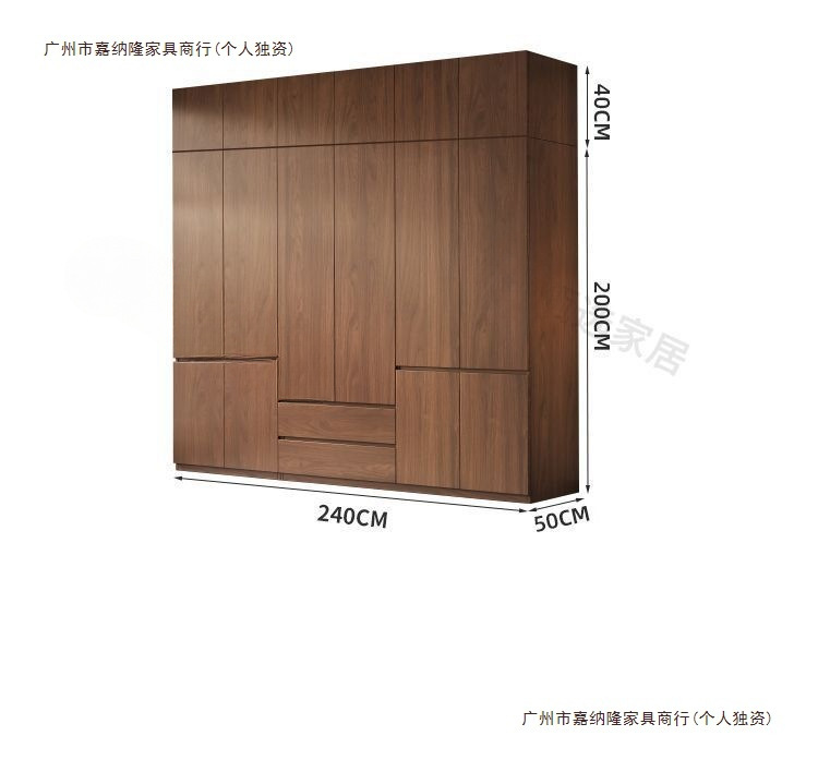 • 업그레이드 2.4m 옷장 + 상단 캐비닛 [ 2.4m 높이 ] 원목 호두 색상