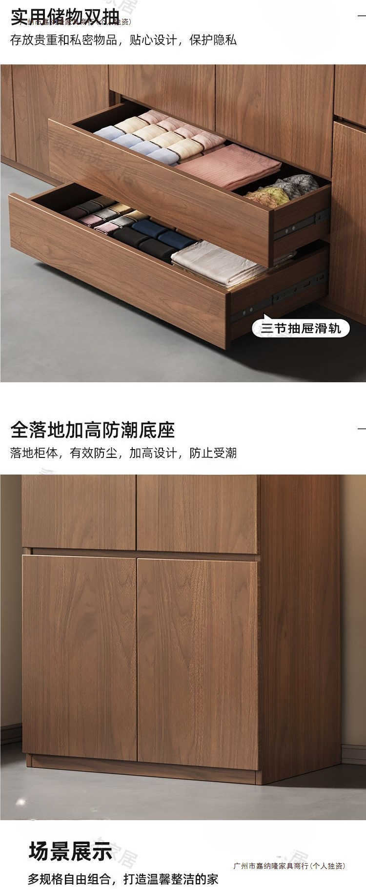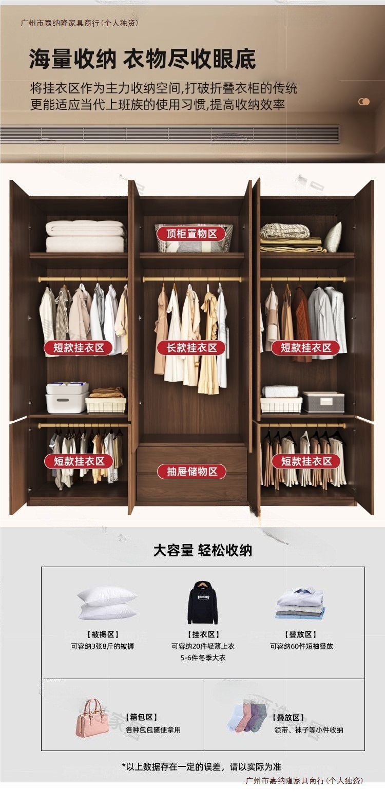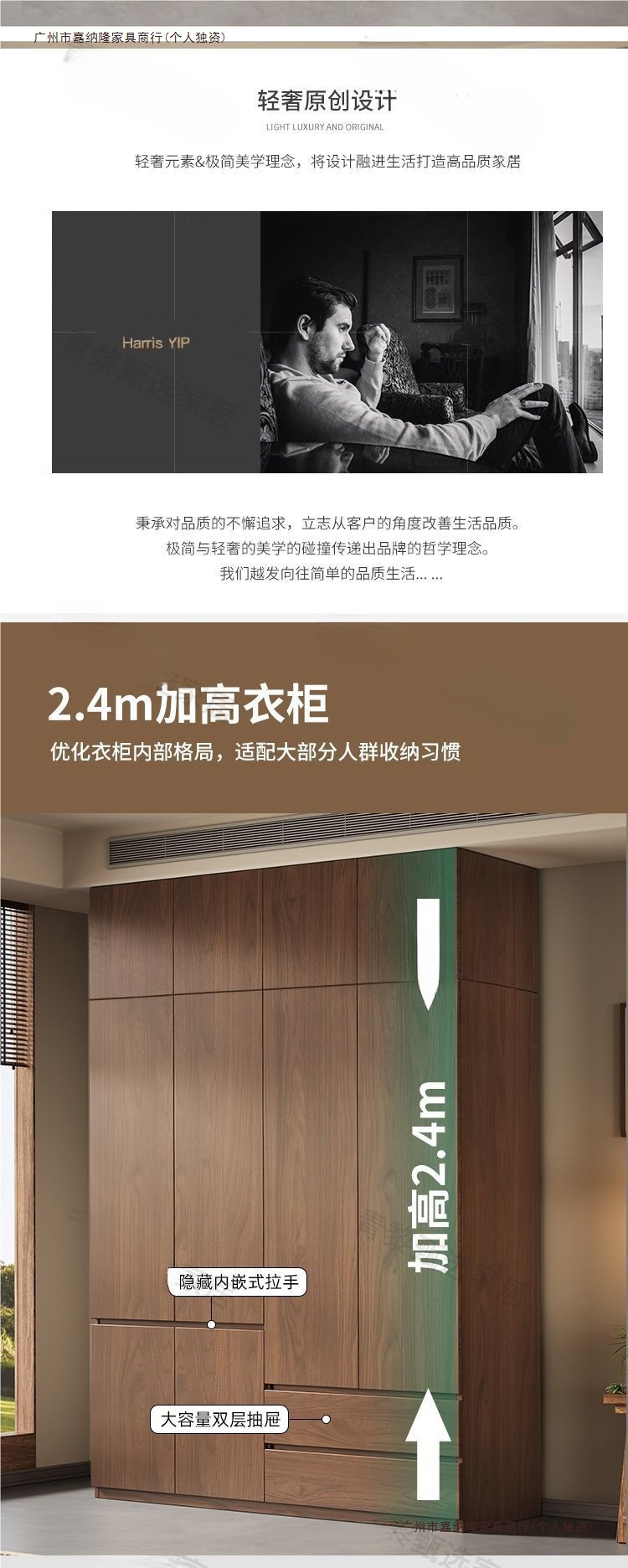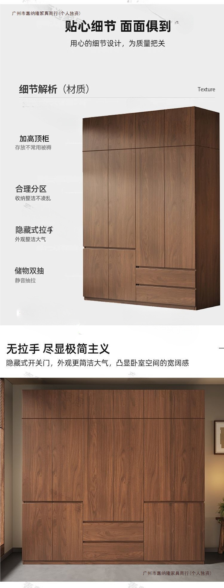 • 업그레이드 2.4m 옷장 + 상단 캐비닛 [ 2.4m 높이 ] 원목 호두 색상