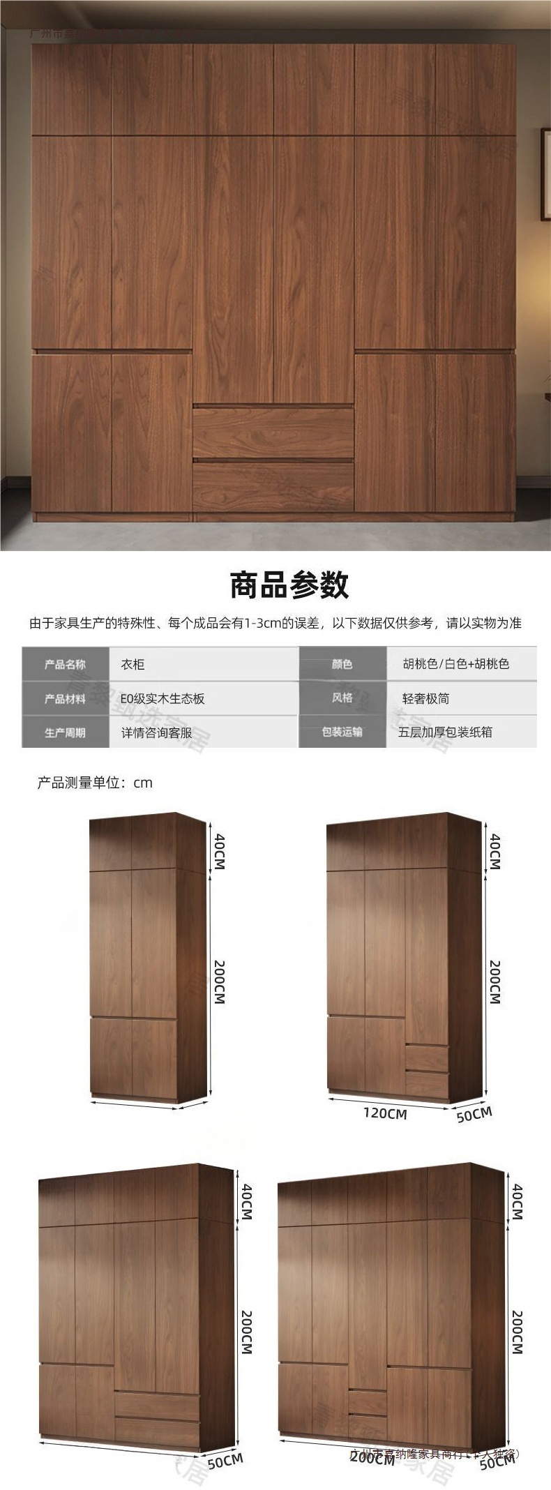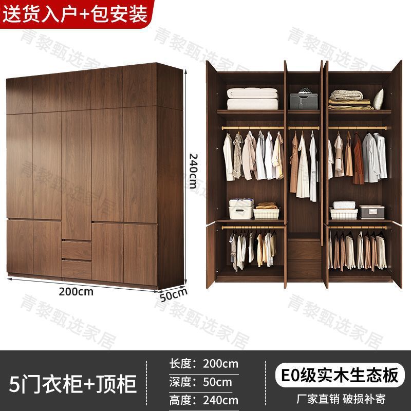 • 업그레이드 2.0m 옷장 + 상단 캐비닛 [ 2.4m 높이 ] 원목 호두 색상