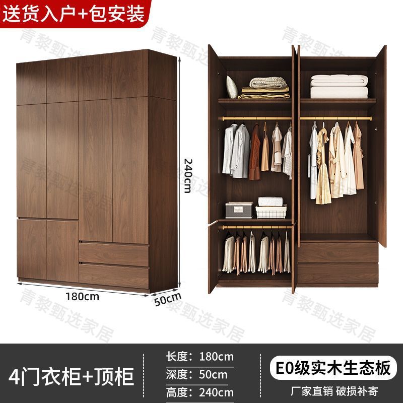• 업그레이드 1.8m 옷장 + 상단 캐비닛 [ 2.4m 높이 ] 원목 호두 색상