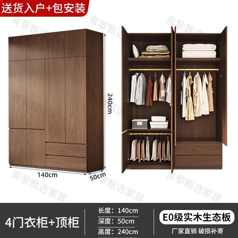 • 업그레이드 1.4m 옷장 + 상단 캐비닛 [ 2.4m 높이 ] 원목 호두 색상