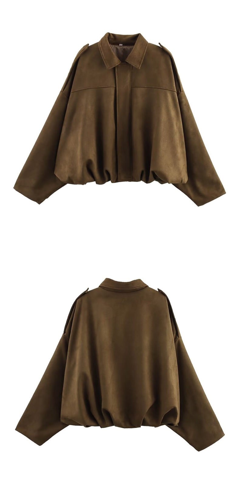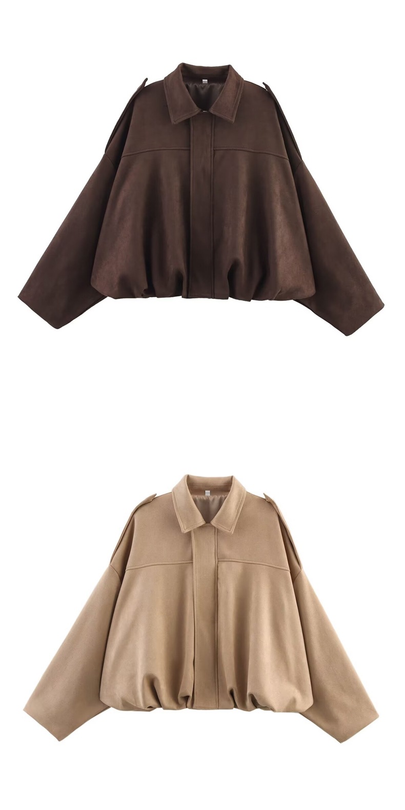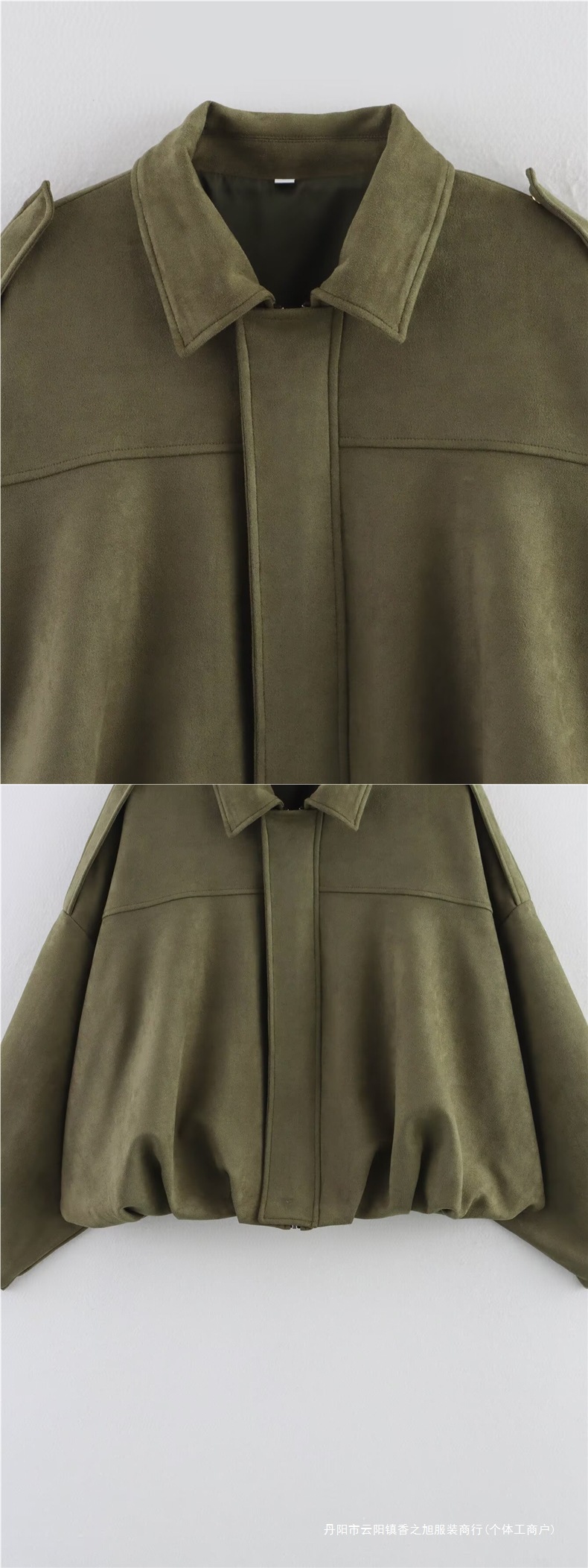2025 봄 신상품 유럽과 미국의 국경 간 여성 스웨이드 질감 라펠 봄버 재킷 107 8824