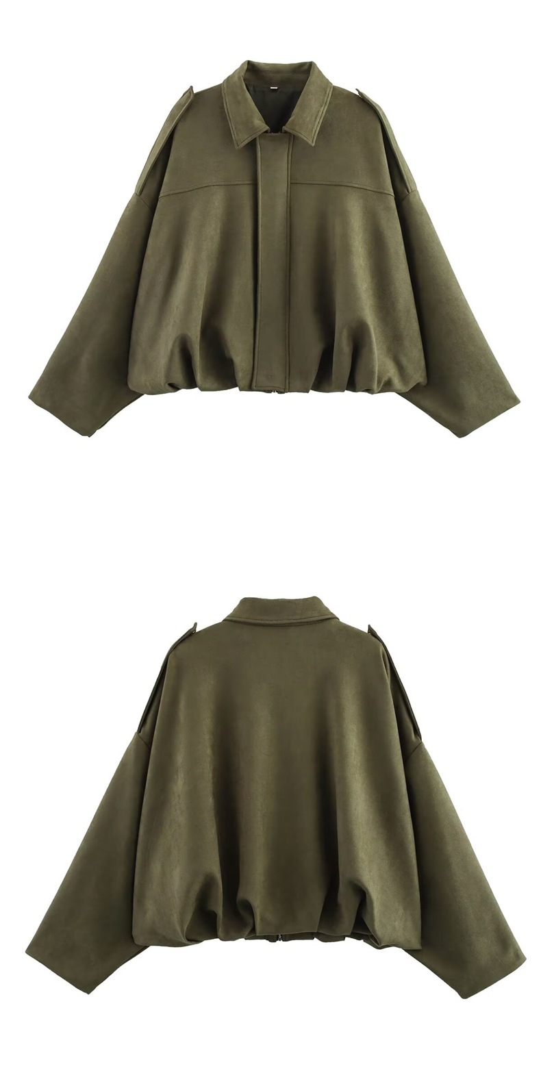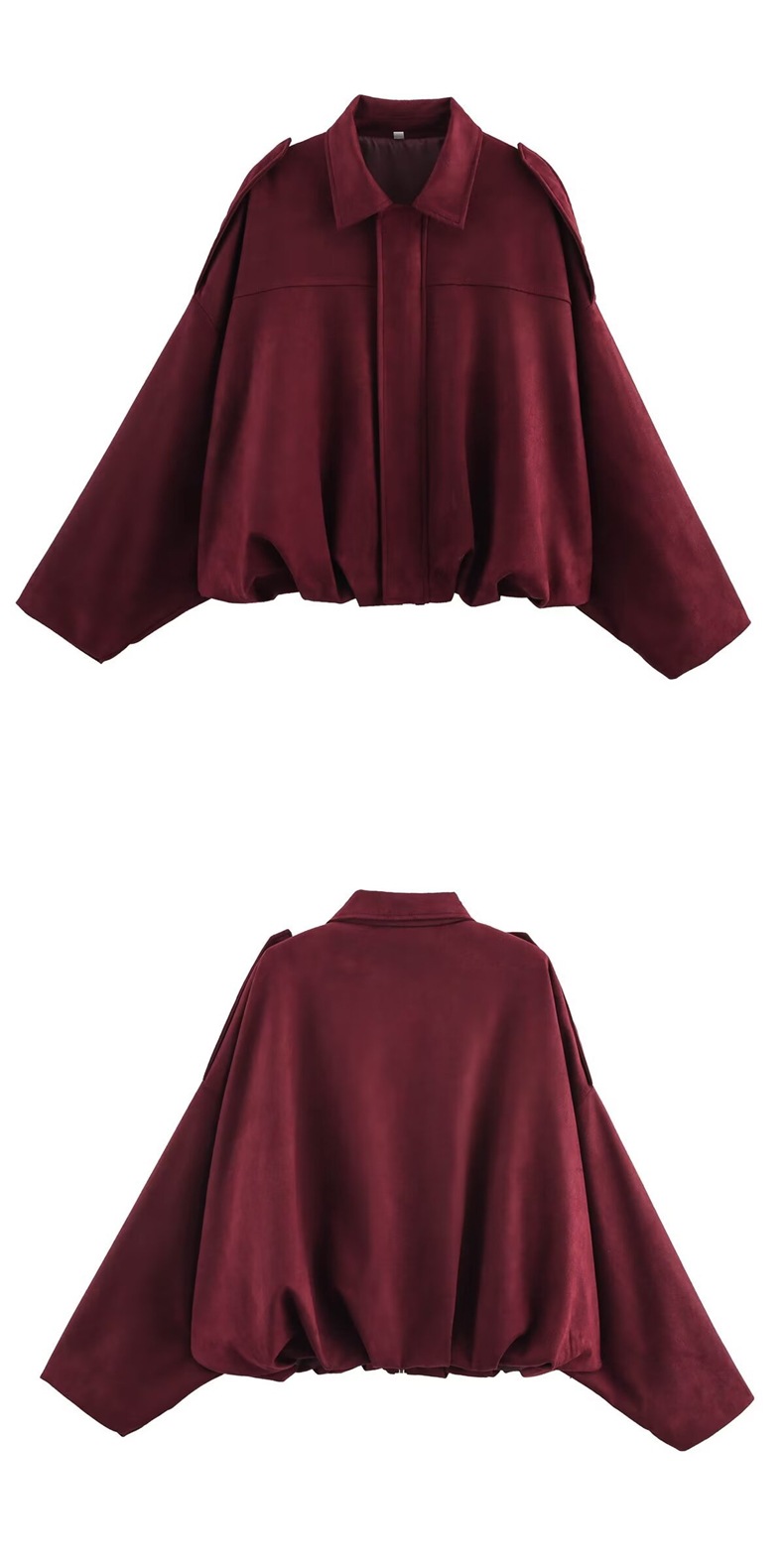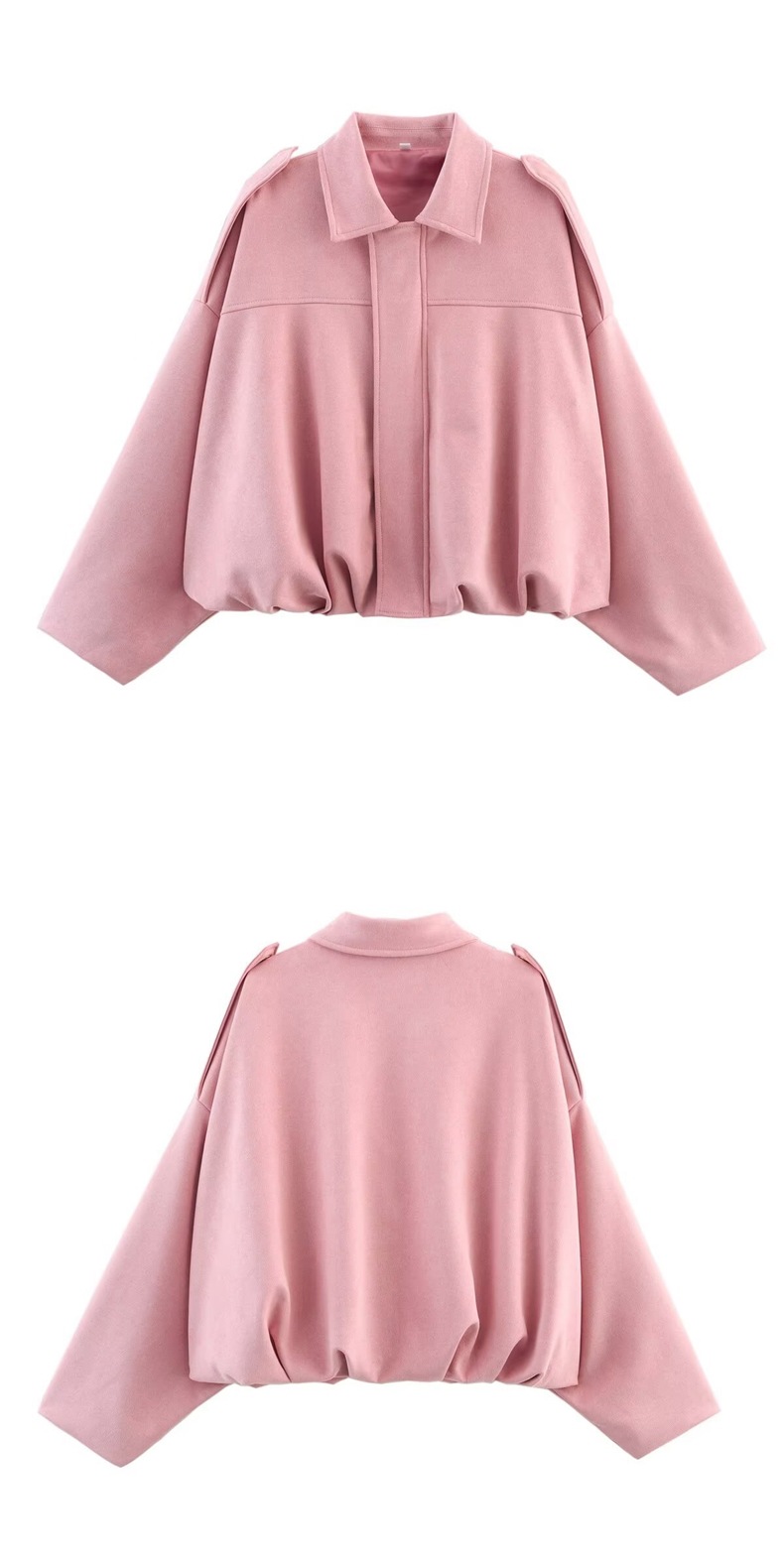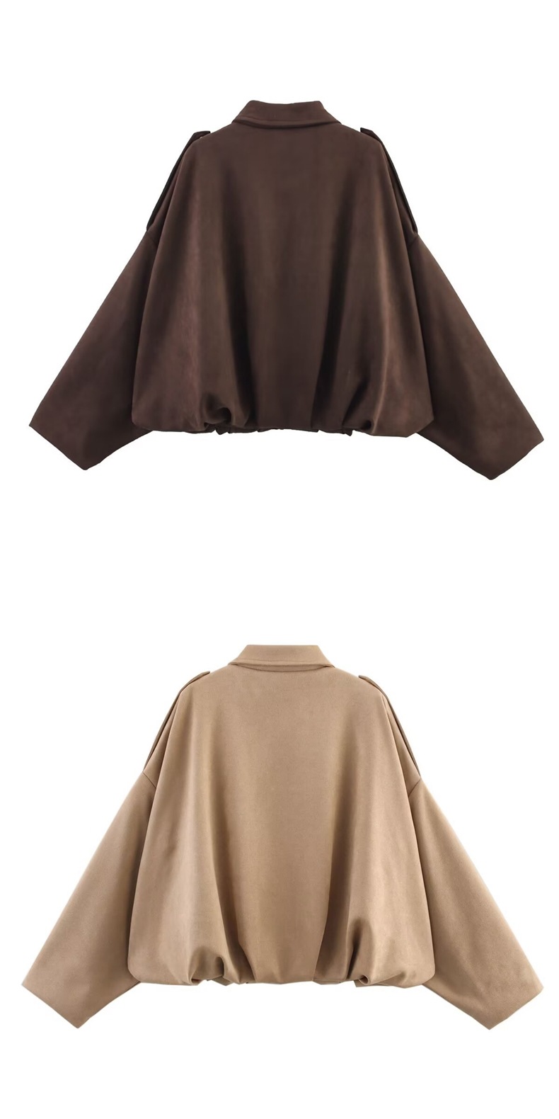 2025 봄 신상품 유럽과 미국의 국경 간 여성 스웨이드 질감 라펠 봄버 재킷 107 8824