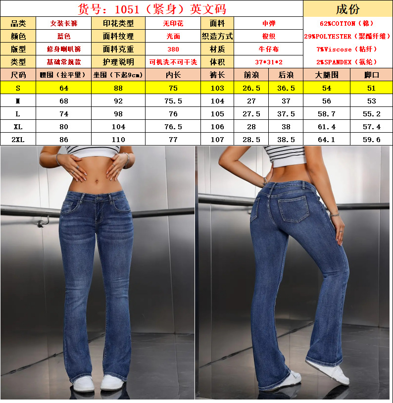 유럽과 미국의 국경 간 여성 청바지, 신축성 있고 패셔너블하며 심플한 진한 파란색 바지, 슬림하고 다재다능한 플레어 바지스토어 가기