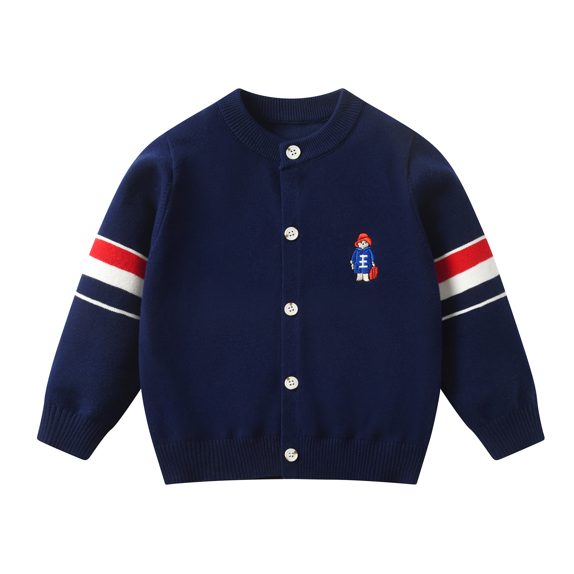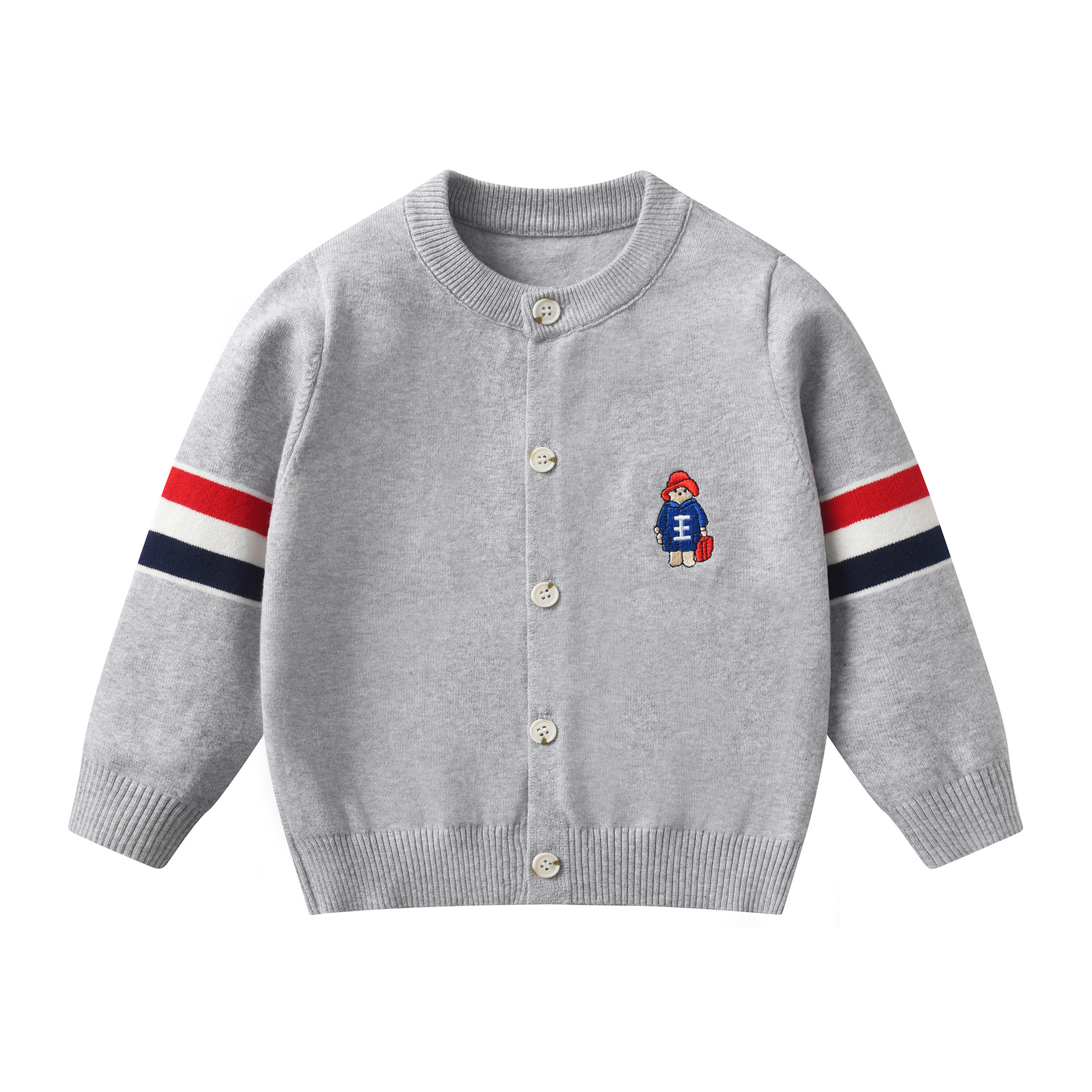 중대형 어린이를 위한 트렌디한 니트 가디건 2025 가을 신상 싱글 레이어 면 라운드 넥 자수 만화 스트라이프 탑