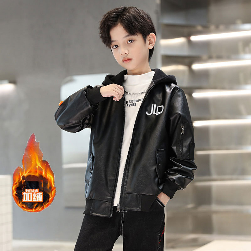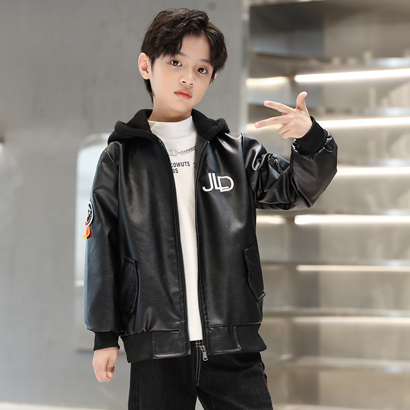 소년 가죽 자켓 2025 새로운 스타일 중대형 어린이 봄, 가을 오토바이 자켓 소년 잘 생긴 가죽 자켓 후드 코트 유행