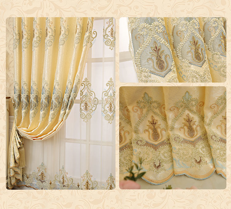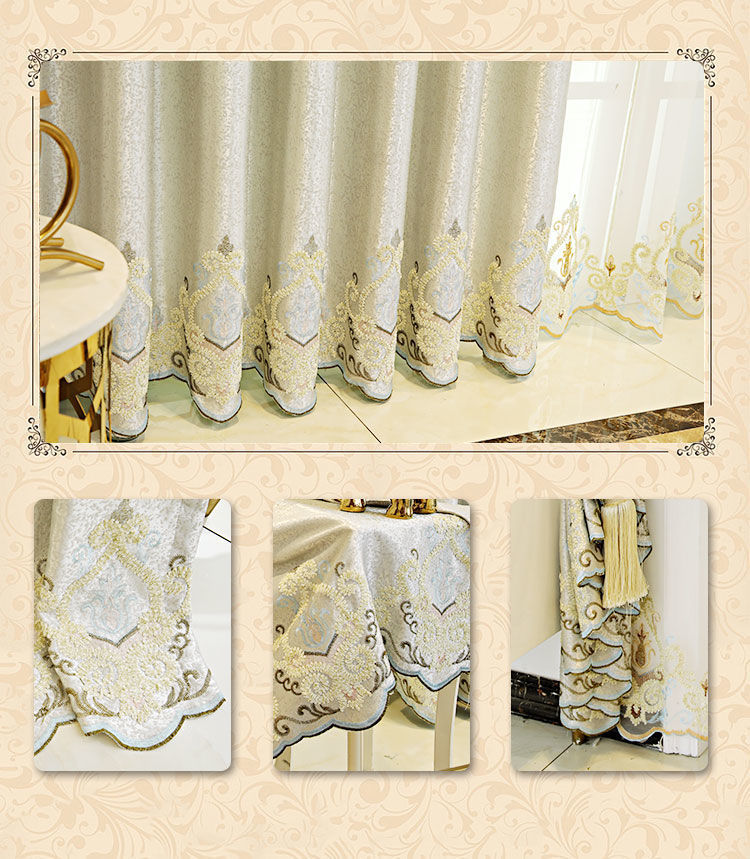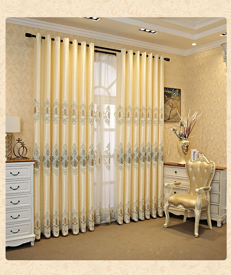 [직접 판매] 새로운 스타일의 자수 고급스럽고 분위기 있는 유럽식 거실 커튼 완제품 심플하고 모던한 빛 차단 침실