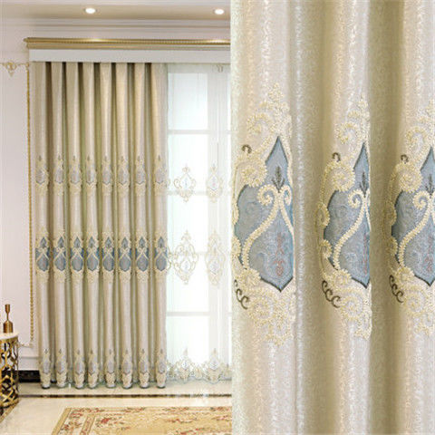 [직접 판매] 새로운 스타일의 자수 고급스럽고 분위기 있는 유럽식 거실 커튼 완제품 심플하고 모던한 빛 차단 침실스토어 가기