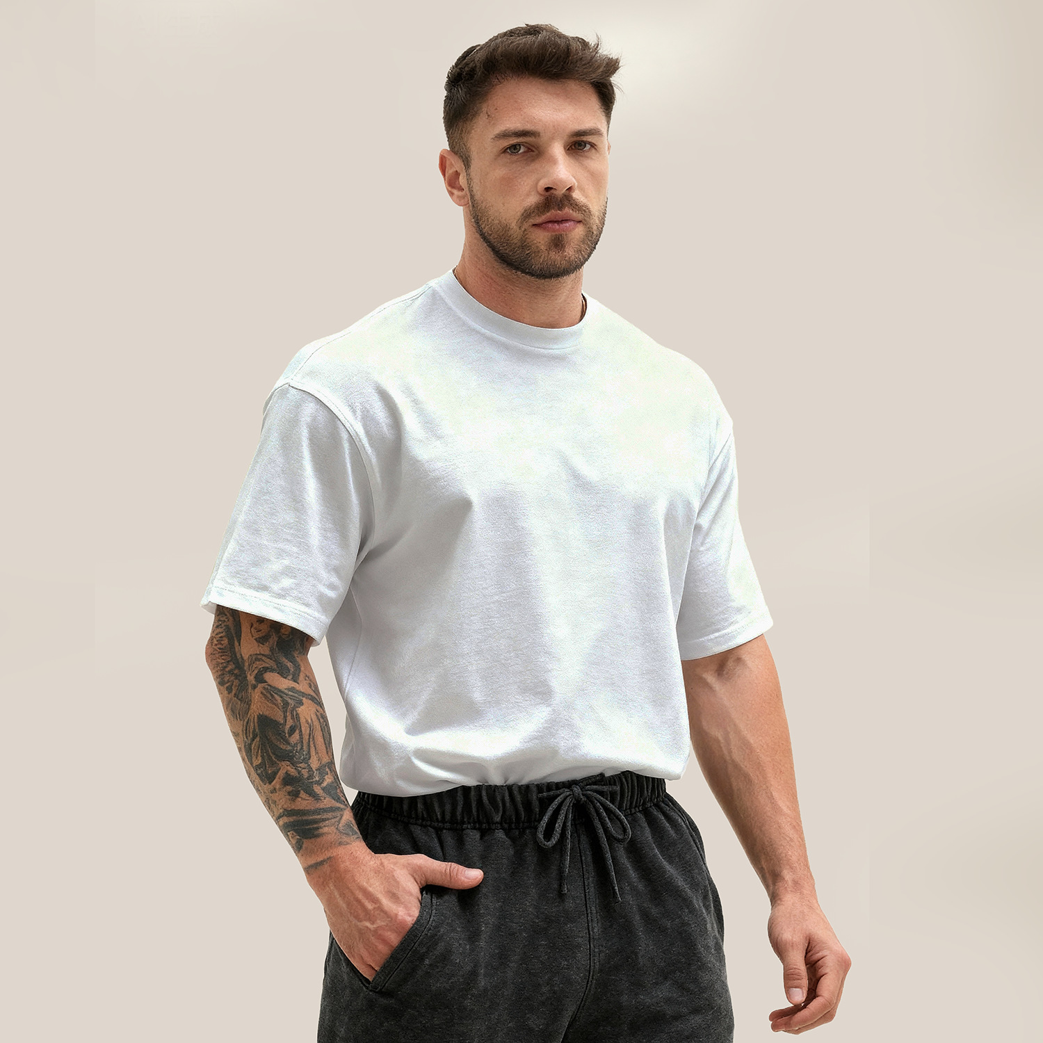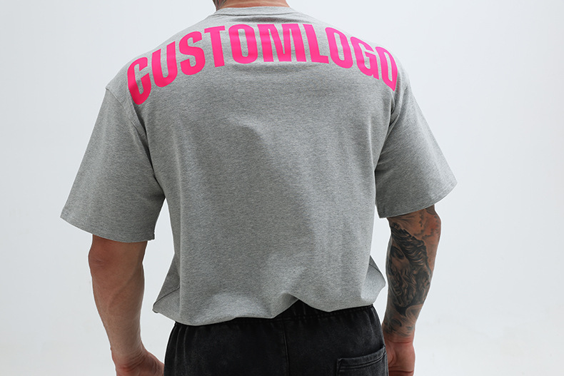 미국 트렌디 청소년 스포츠 남성 루즈핏 티셔츠 드롭숄더 오버사이즈 특대 사이즈 풀오버 스포츠 피트니스 티셔츠 남성용
